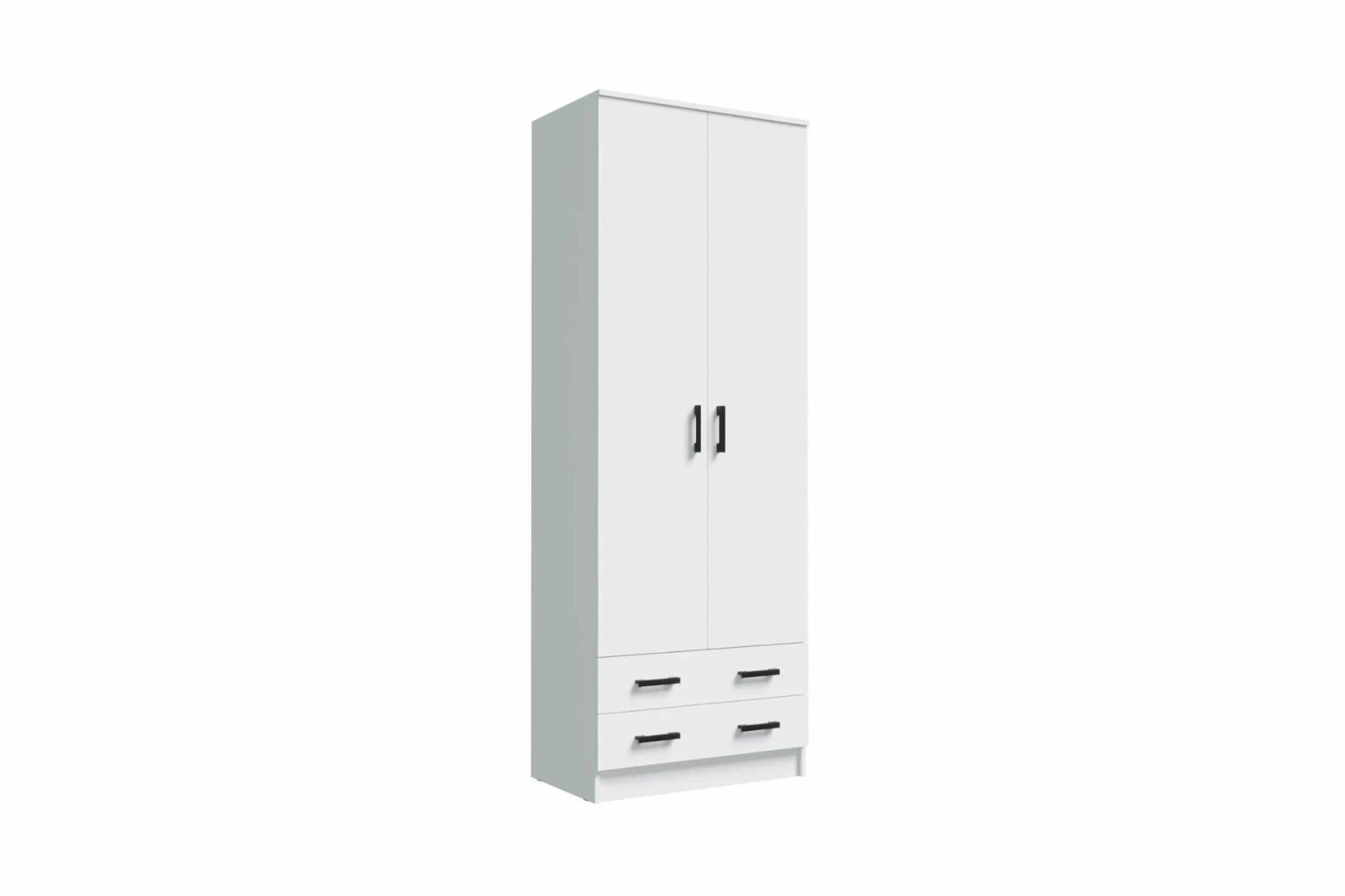 Шкаф распашной для одежды Прагма с ящиками, продольная штанга, 80х48.7х220 см, Белый гладкий
