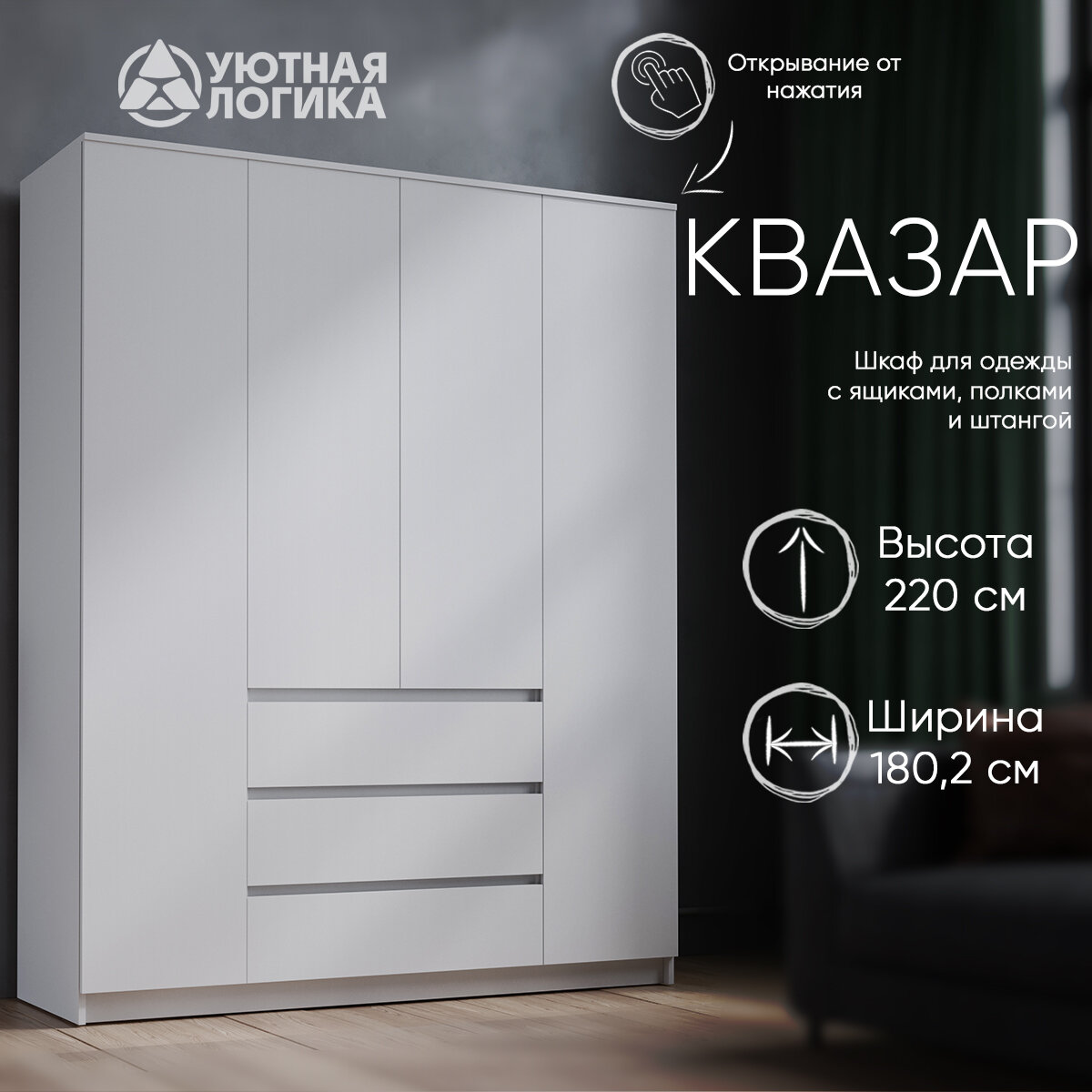 Шкаф распашной для одежды четырехдверный уютная логика Квазар с 3 ящиками ШК 041 220*180*51,4 Белый интересное: