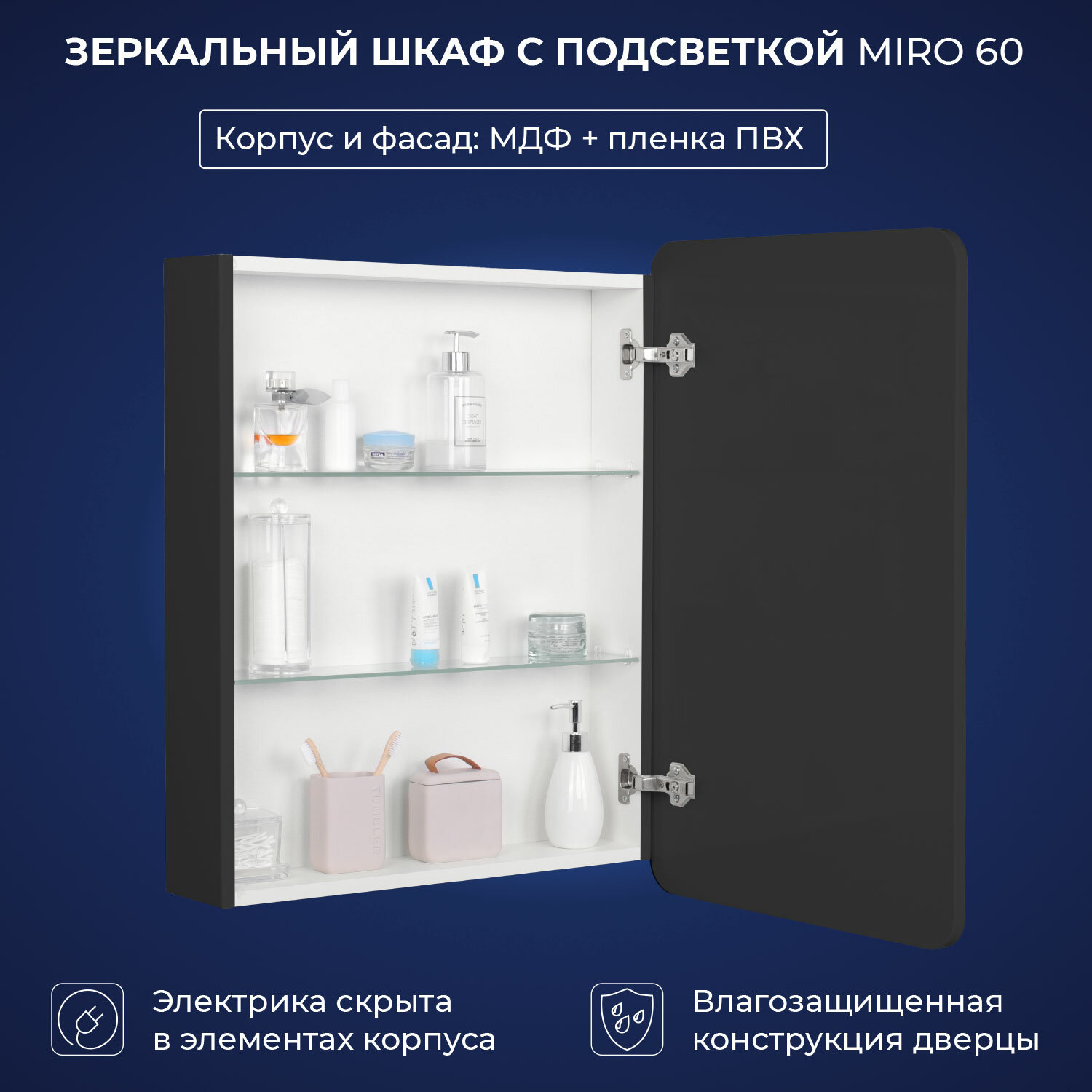 СохранитьЗеркальный шкаф с подсветкой Итана Miro 60 600х150х790 1С правое Графит интересное: