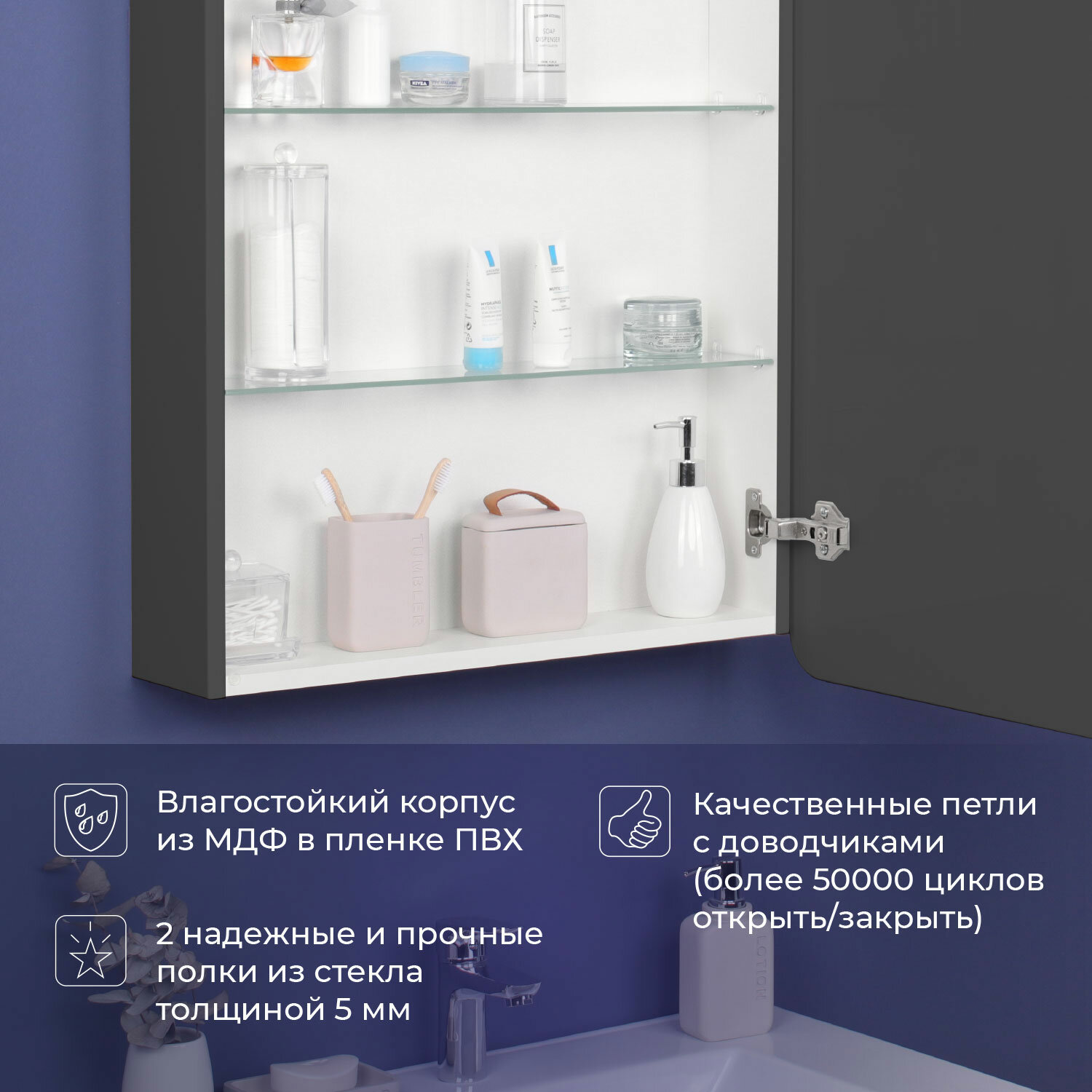 | Особенности | доводчики, подсветка, с зеркалом |