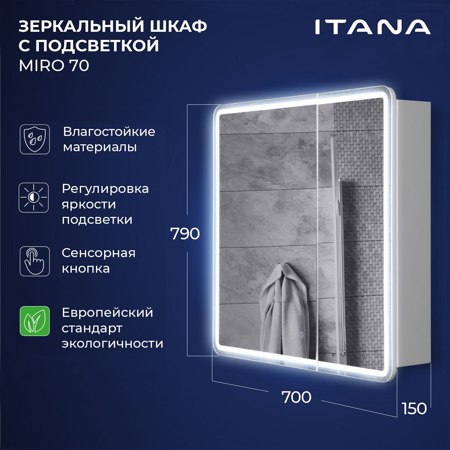 Купить Зеркальный шкаф с подсветкой Итана Miro 70 700х150х790 Белый глянец