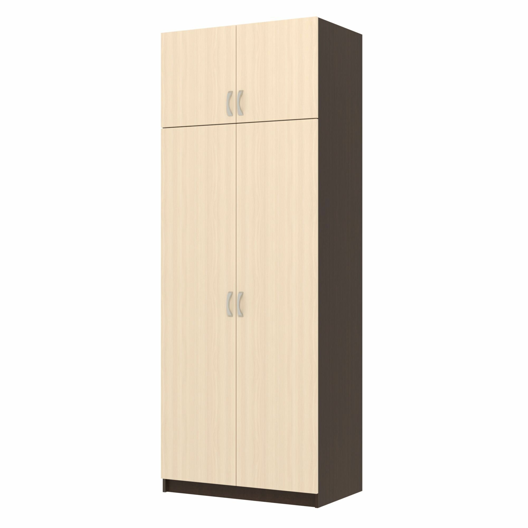 Шкаф двухстворчатый Флагман-4 с антресолью, полками и штангой от Фант-Мебель, 220х83х48, цвет Ясень светлый/Ясень темный