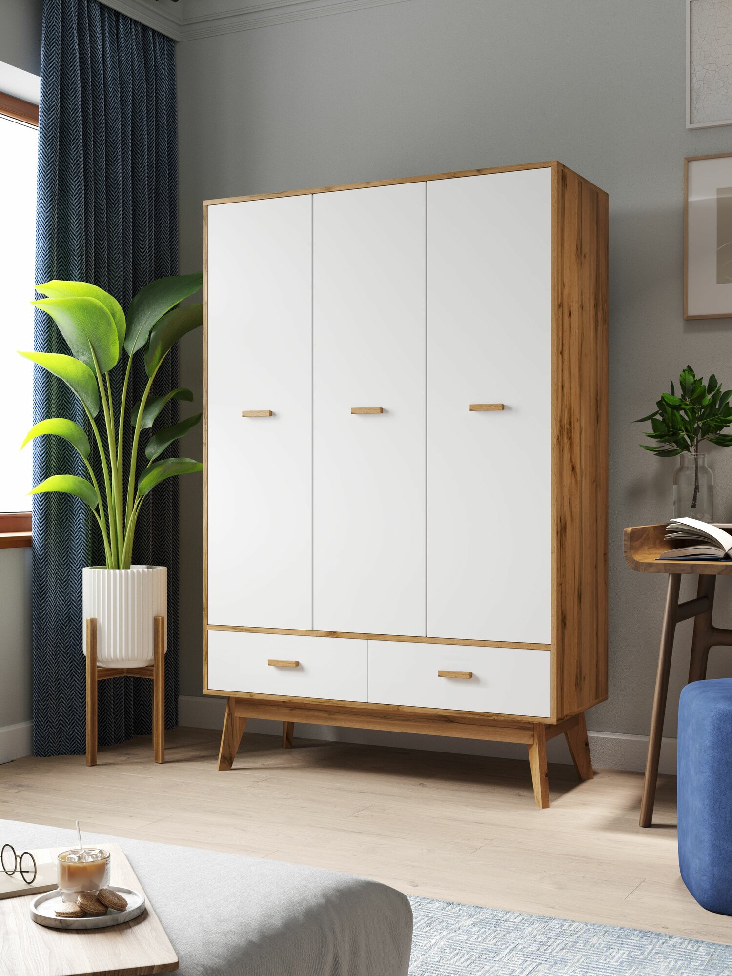 Шкаф для одежды 3-х дверный, Дуб вотан / Белый, 1850х1190х500 мм