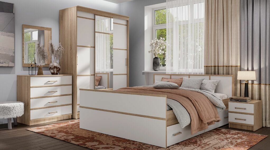 Шкаф-купе для одежды Нонтон Сакура, дуб сонома / белый 150 см
