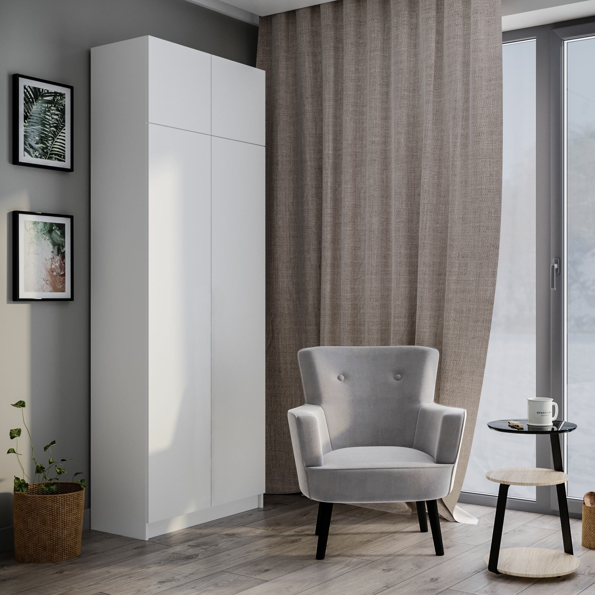 Шкаф распашной с антресолью Фарелл 35 белый, Белый матовый ЛДСП, 80х40х220 см