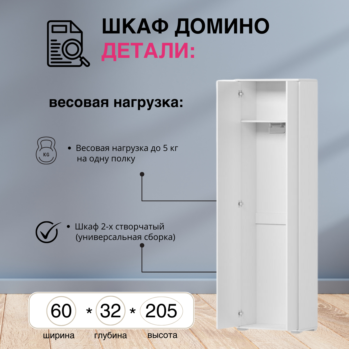 Шкаф 2-х створчатый Домино (А) - Белый (Гладкий) интересное: