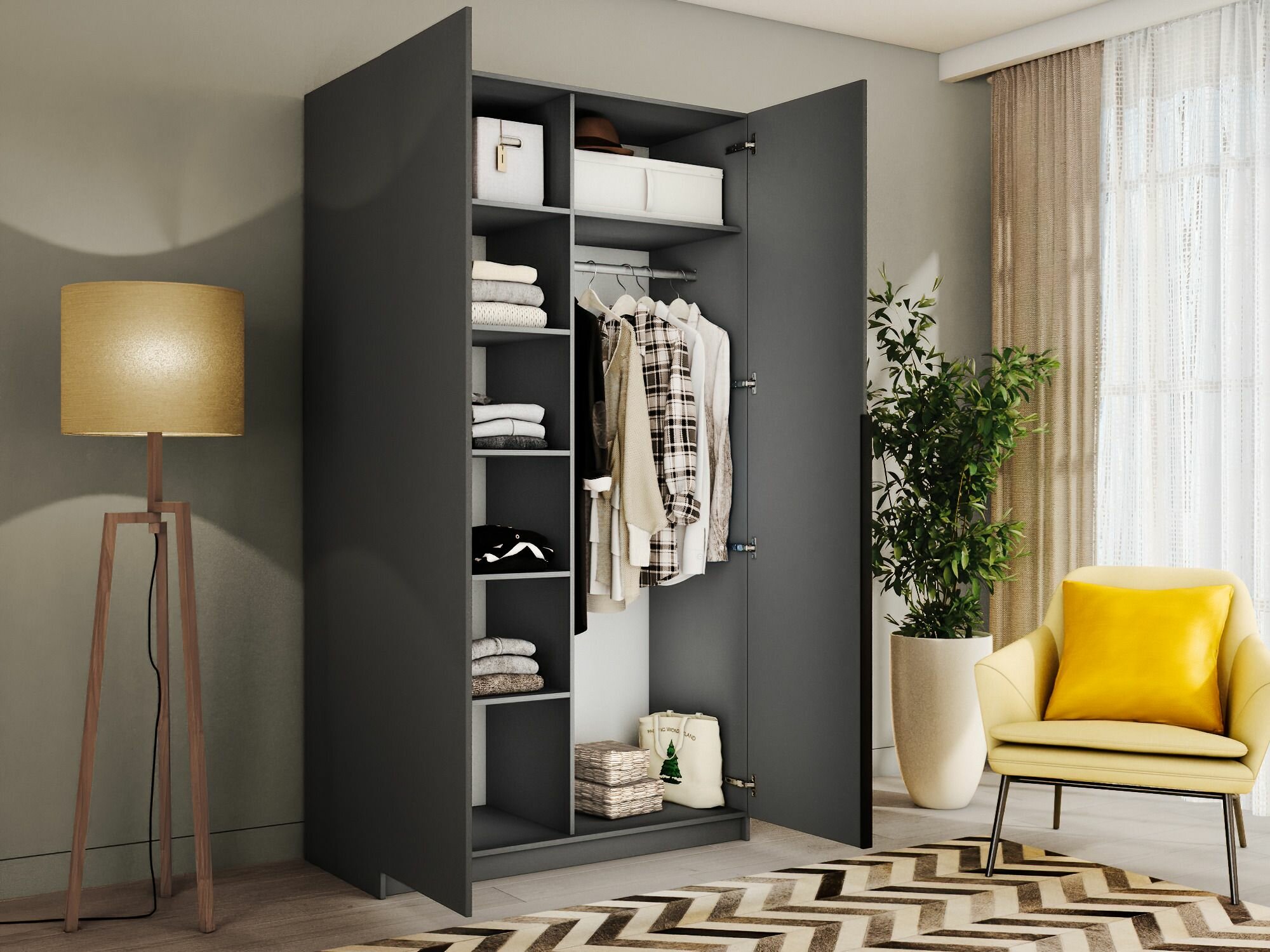 Шкаф для одежды распашной Нонтон Луас, 120 см, 7 полок и штанга, белый глянец