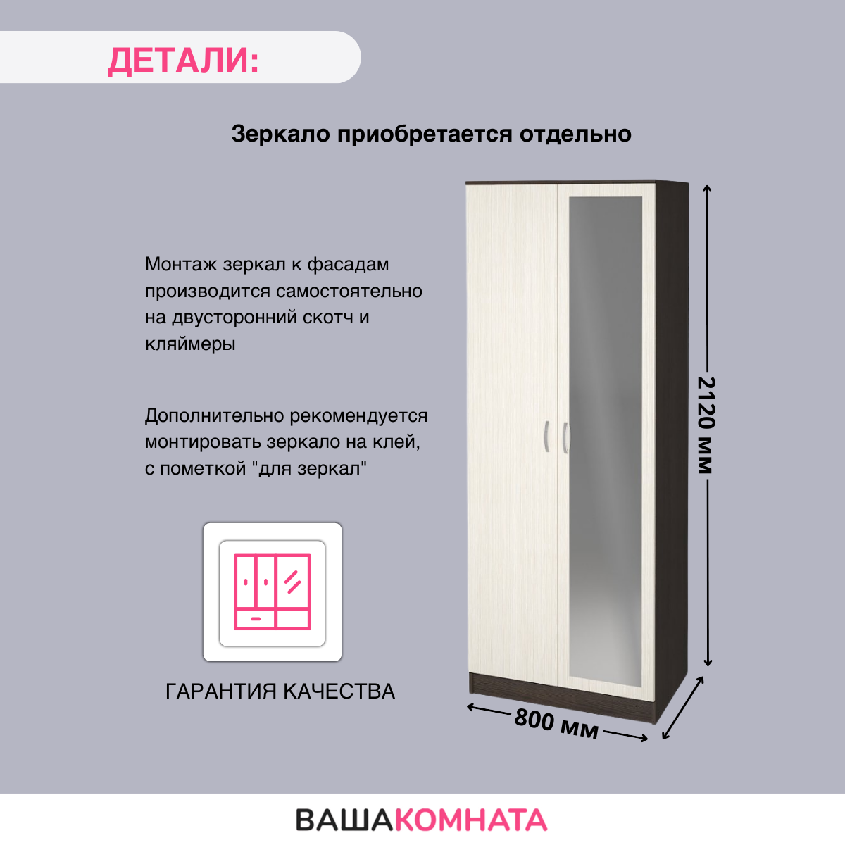Шкаф 2-створчатый ШК-20 "ронда" с зеркалом - венге/дуб белфорд