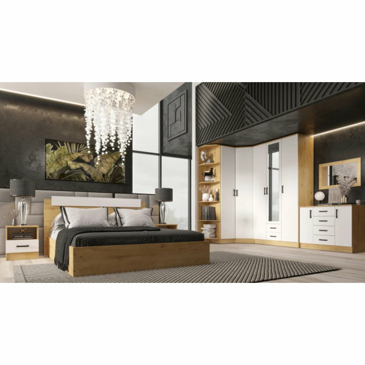 Первый Мебельный Распашной шкаф для одежды Прагма 2 четырехстворчатый, с ящиками, с полками, с зеркалом, продольная штанга, 160х48.7х220 см, Дуб вотан / Белый гладкий