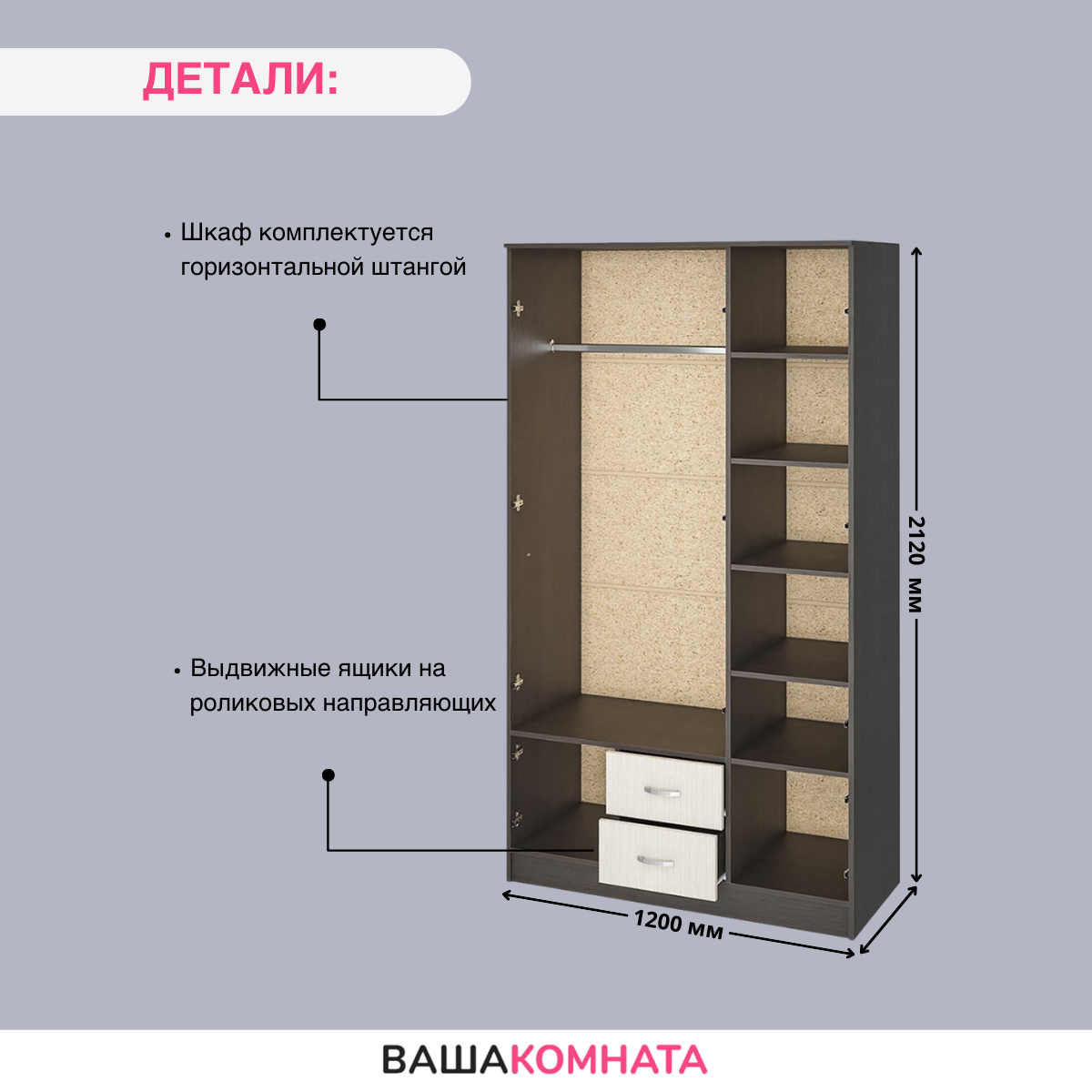 | Назначение | для гостиной / для детской / для кухни / для одежды / для прихожей / для спальни |
