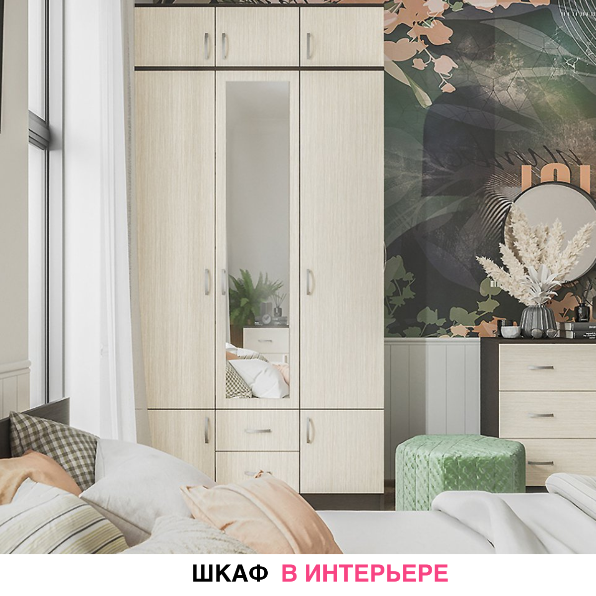 Шкаф распашной Берген ШК-800 с зеркалом Ронда ЗШК, кашемир (Интерьер-Центр)
