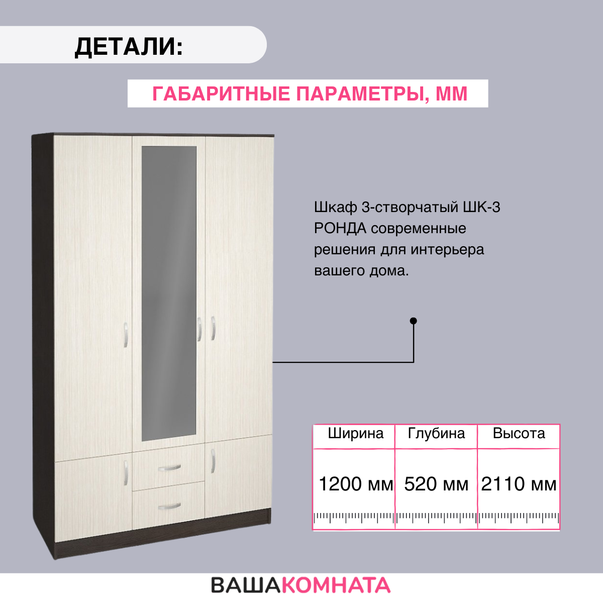 Ниже Вы можете прочитать отзывы на Шкаф 3-створчатый ШК-3 "ронда" - венге/дуб белфорд, ознакомится с подробными характеристиками, посмотреть интересные обзоры и фотографии на Шкаф 3-створчатый ШК-3 "ронда" - венге/дуб белфорд.
