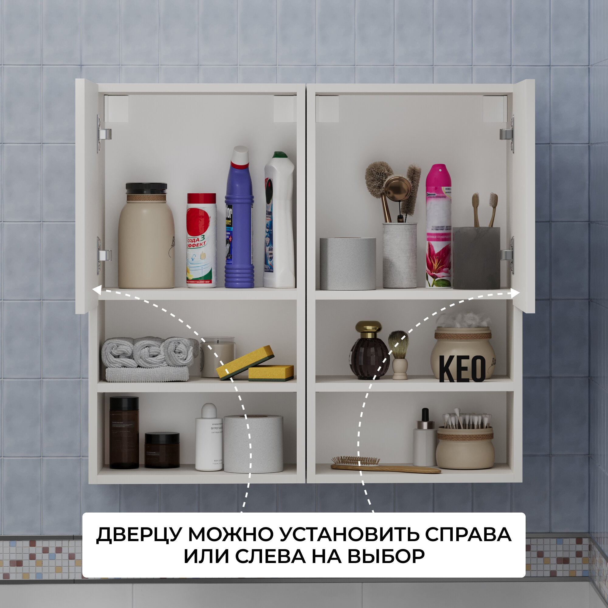 Купить Шкаф навесной Кео ШКН-220 белый с полками для вещей для ванной кухни прихожей на балкон 740х269х400 мм