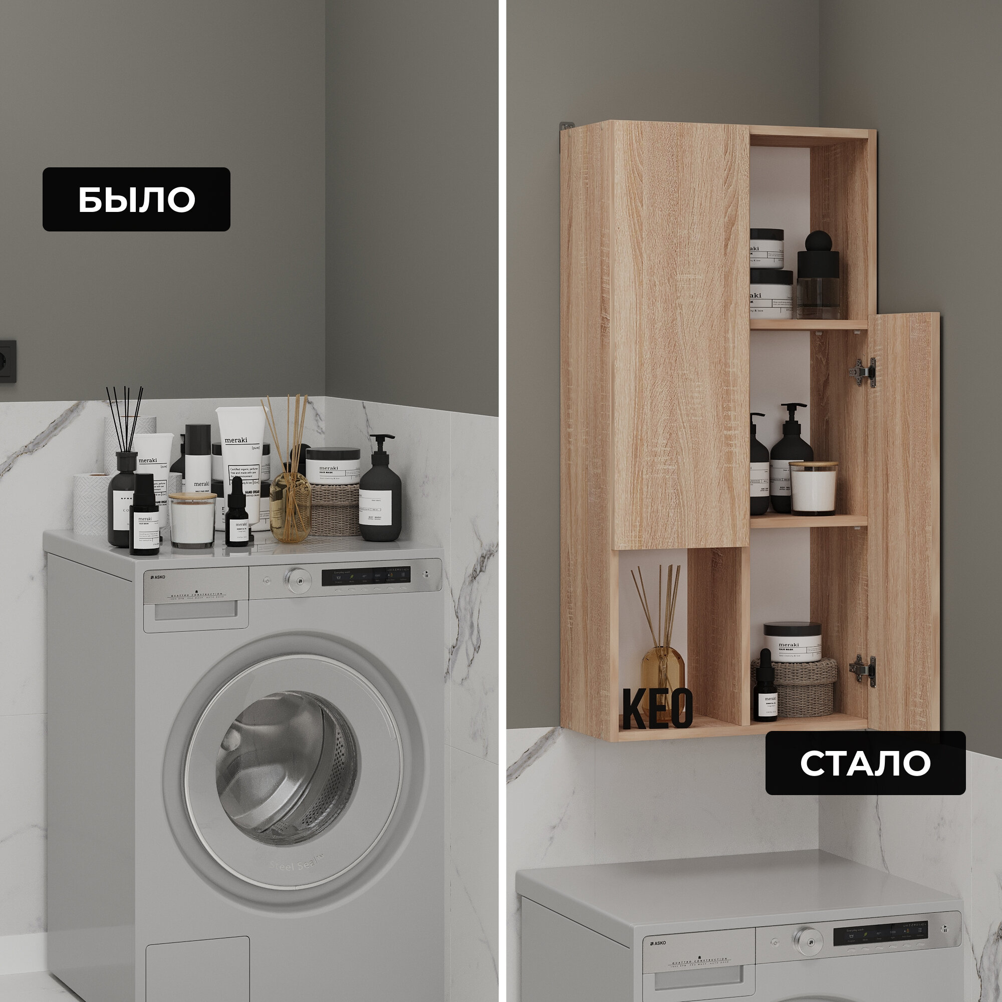 СохранитьШкаф пенал навесной для ванной кухни гостиной Кео ШКН-210 дуб сонома 1050х265х500 мм интересное:
