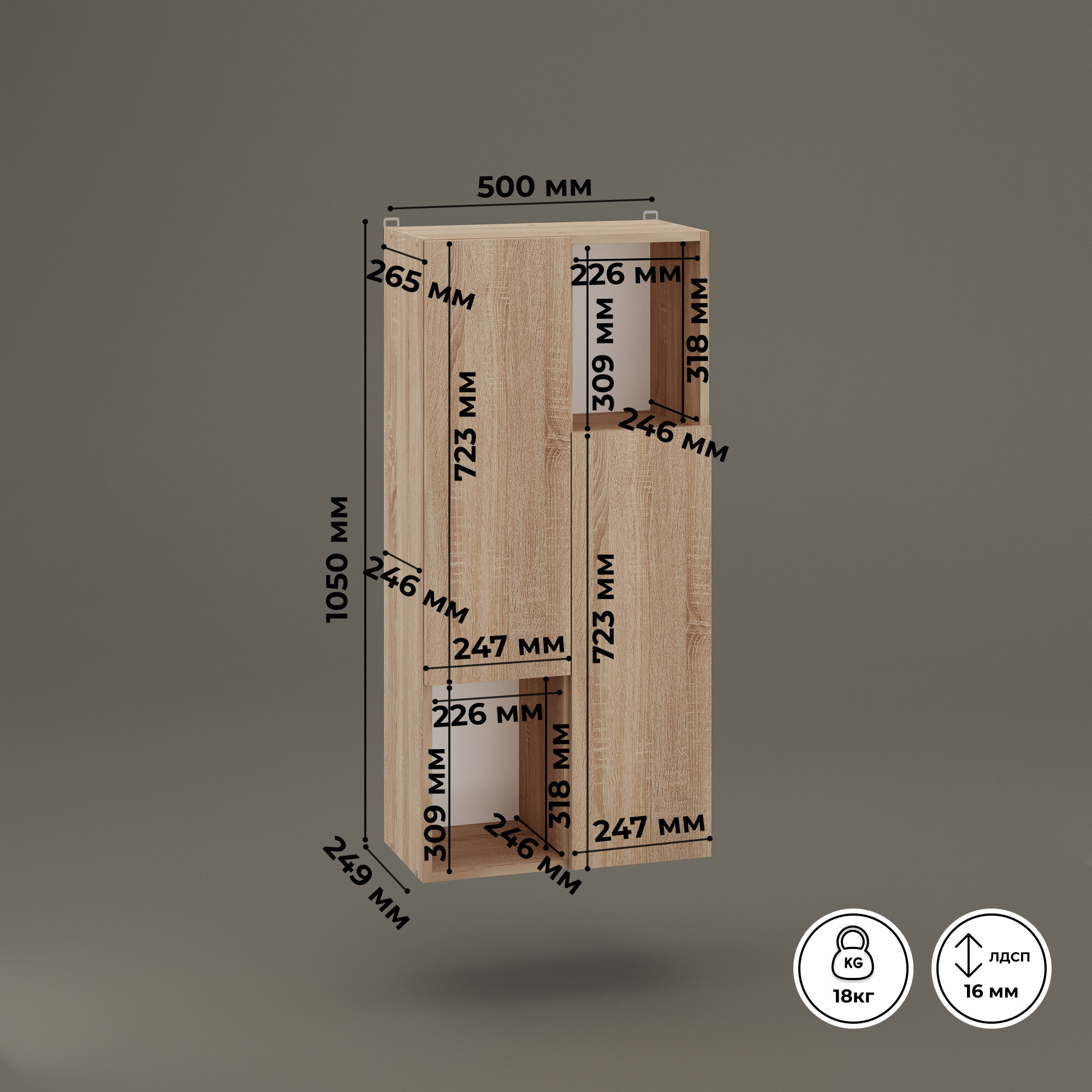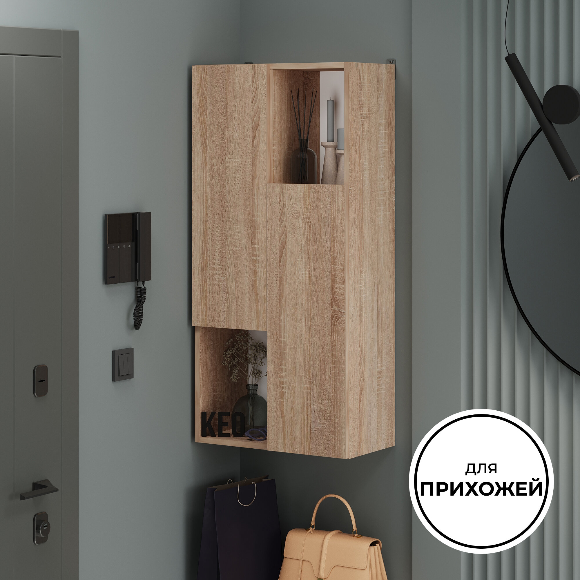 Шкаф навесной Кео ШКН-220 сонома с полками для вещей для ванной кухни прихожей на балкон 740х269х400 мм