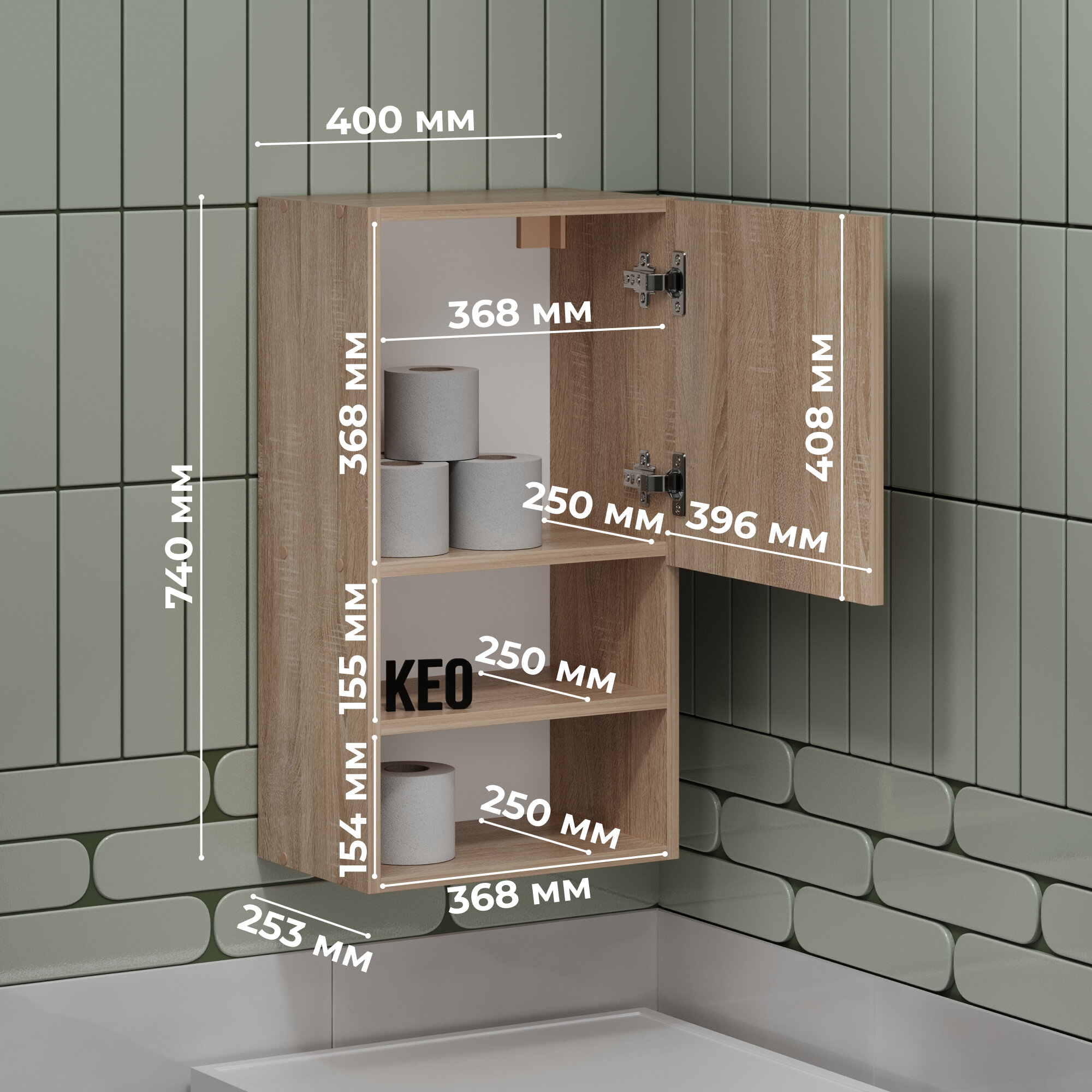 СохранитьШкаф навесной Кео ШКН-220 сонома с полками для вещей для ванной кухни прихожей на балкон 740х269х400 мм интересное: