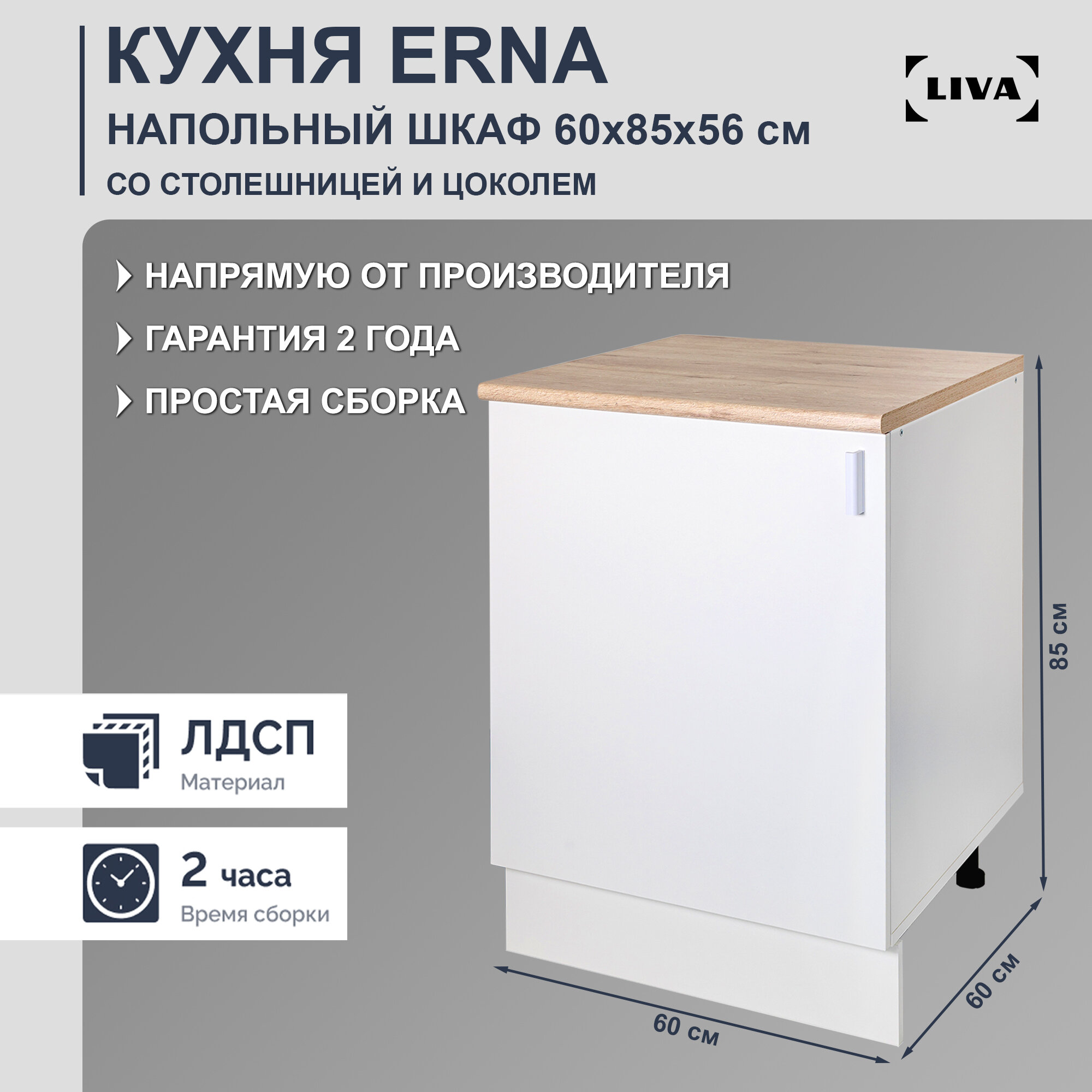 Шкаф кухонный напольный Erna 60х85х56, LIVA интересное: