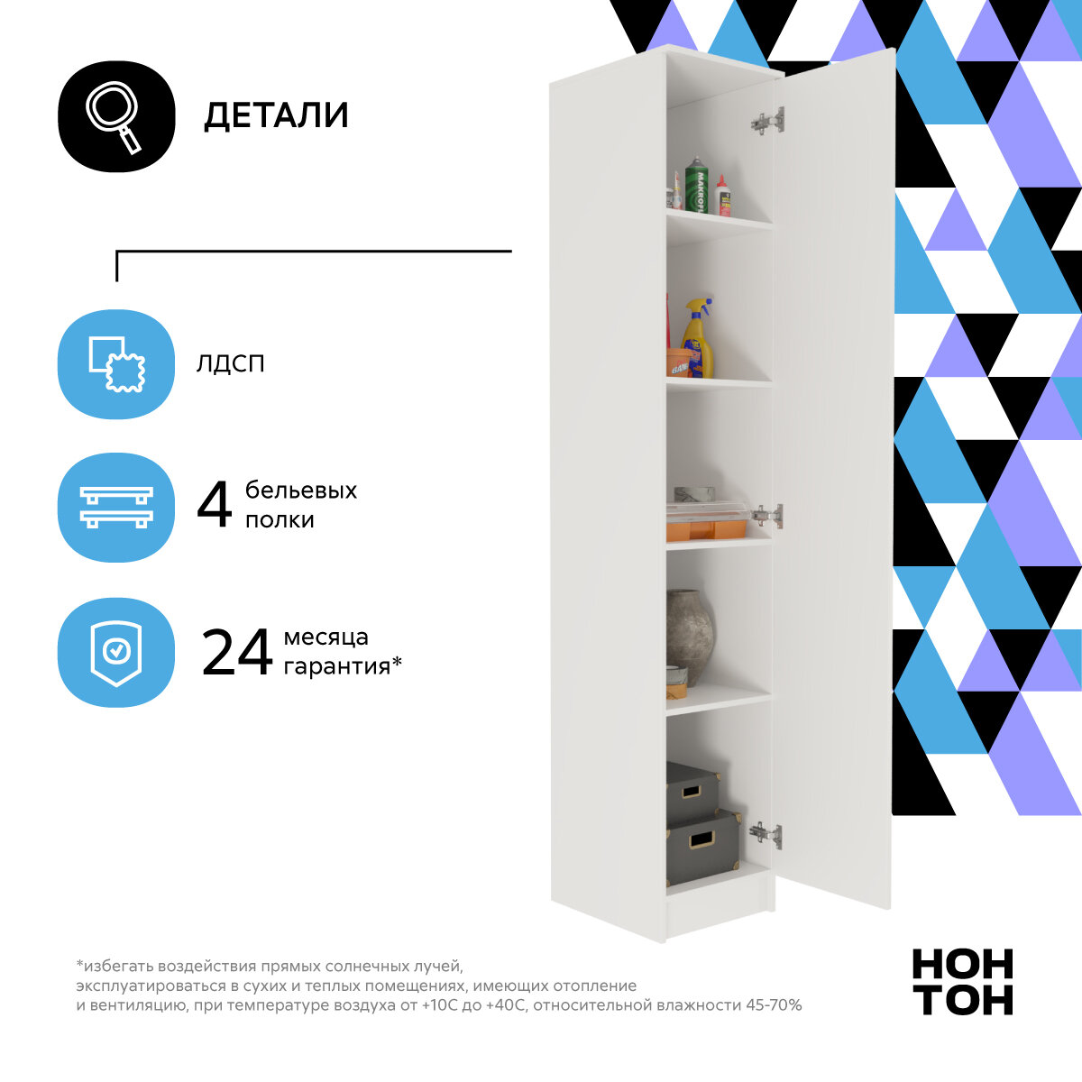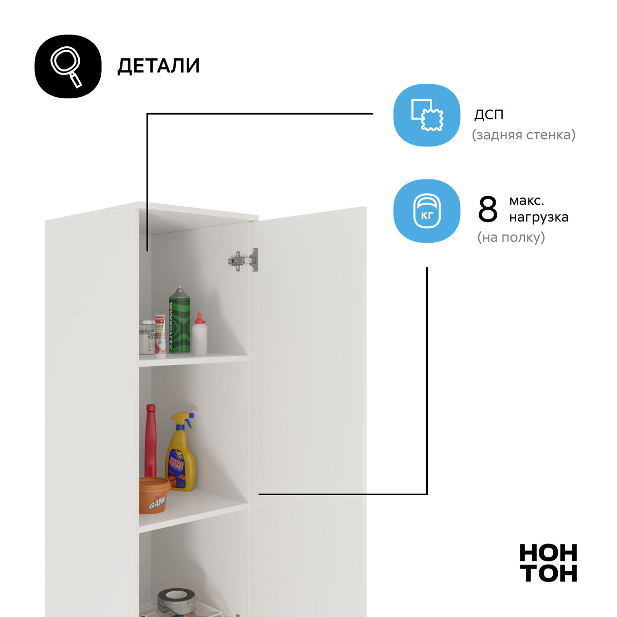 Шкаф для одежды распашной Нонтон Луас, 120 см, 7 полок и штанга, белый глянец
