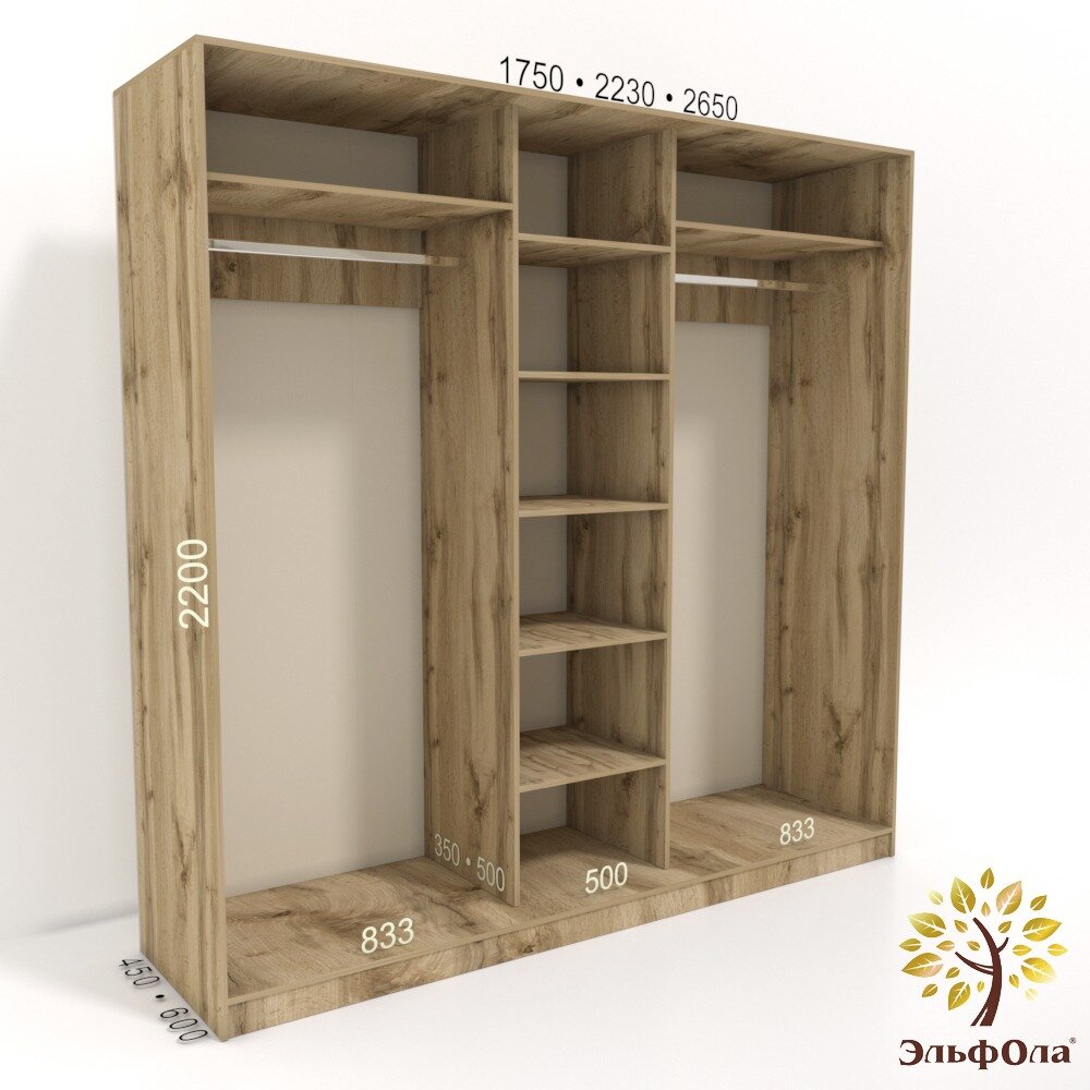 Шкаф-купе ЭльфОла "Элеганс" трехстворчатый 223х60х220 см, дуб вотан