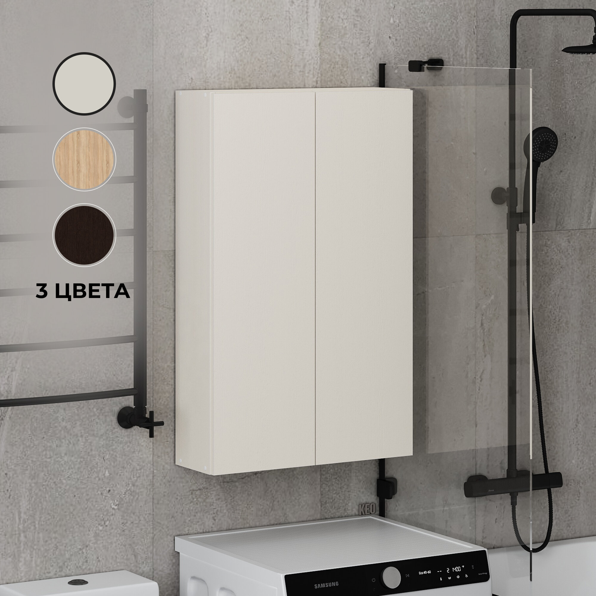 Шкаф навесной распашной Кео ШКН-250 белый с зеркалом полками для вещей в ванную прихожую на балкон 500х173х400 мм