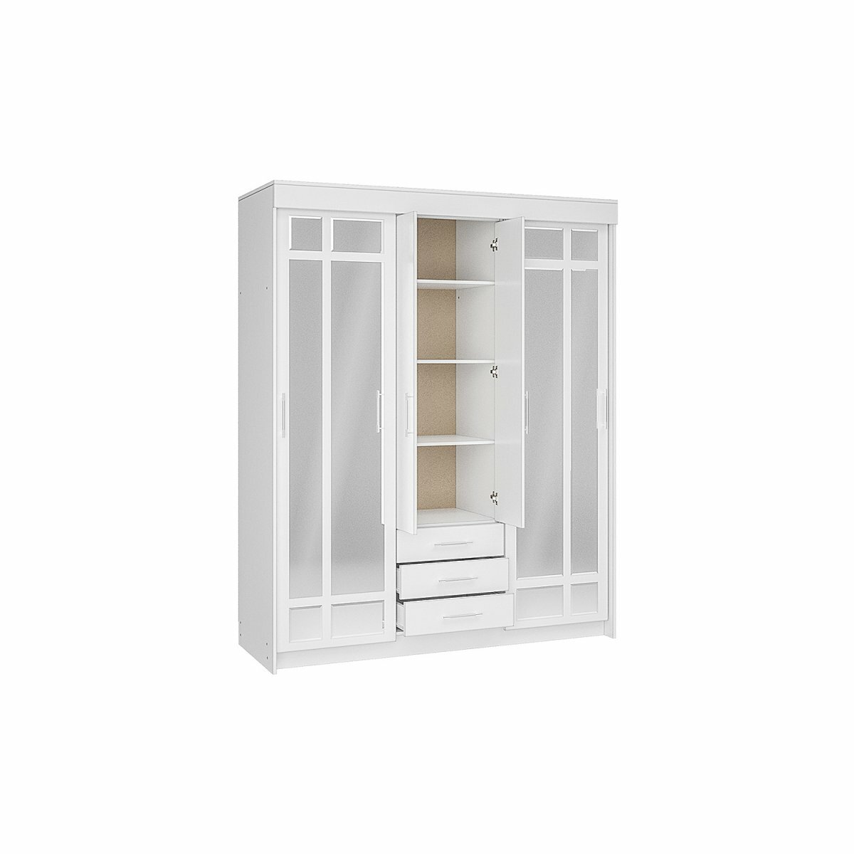 Шкаф четырехстворчатый Берген ШК-1600 (1600*2200*520, ЛДСП, Белое дерево, Интерьер-Центр)