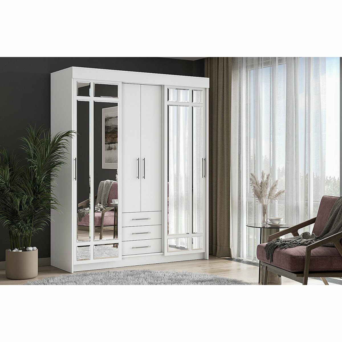 | Комплектация | Шкаф 1 шт. Монтаж зеркал к фасадам производится самостоятельно на двусторонний скотч и кляймеры. Дополнительно рекомендуется монтировать зеркало на клей, с пометкой "для зеркал". |