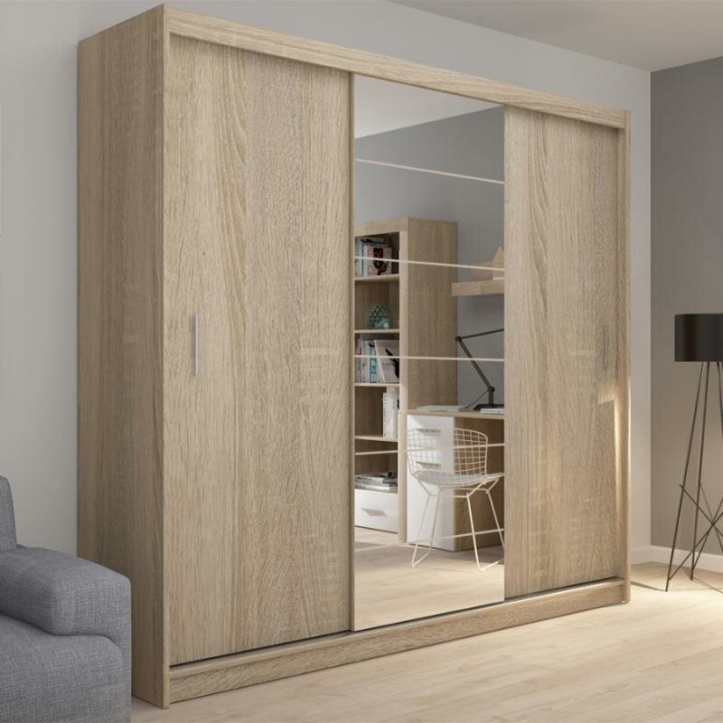 Купить Шкаф-купе Амадеус-1 Дуб для одежды с зеркалом трёхдверный 130*190*40 Мегамебель