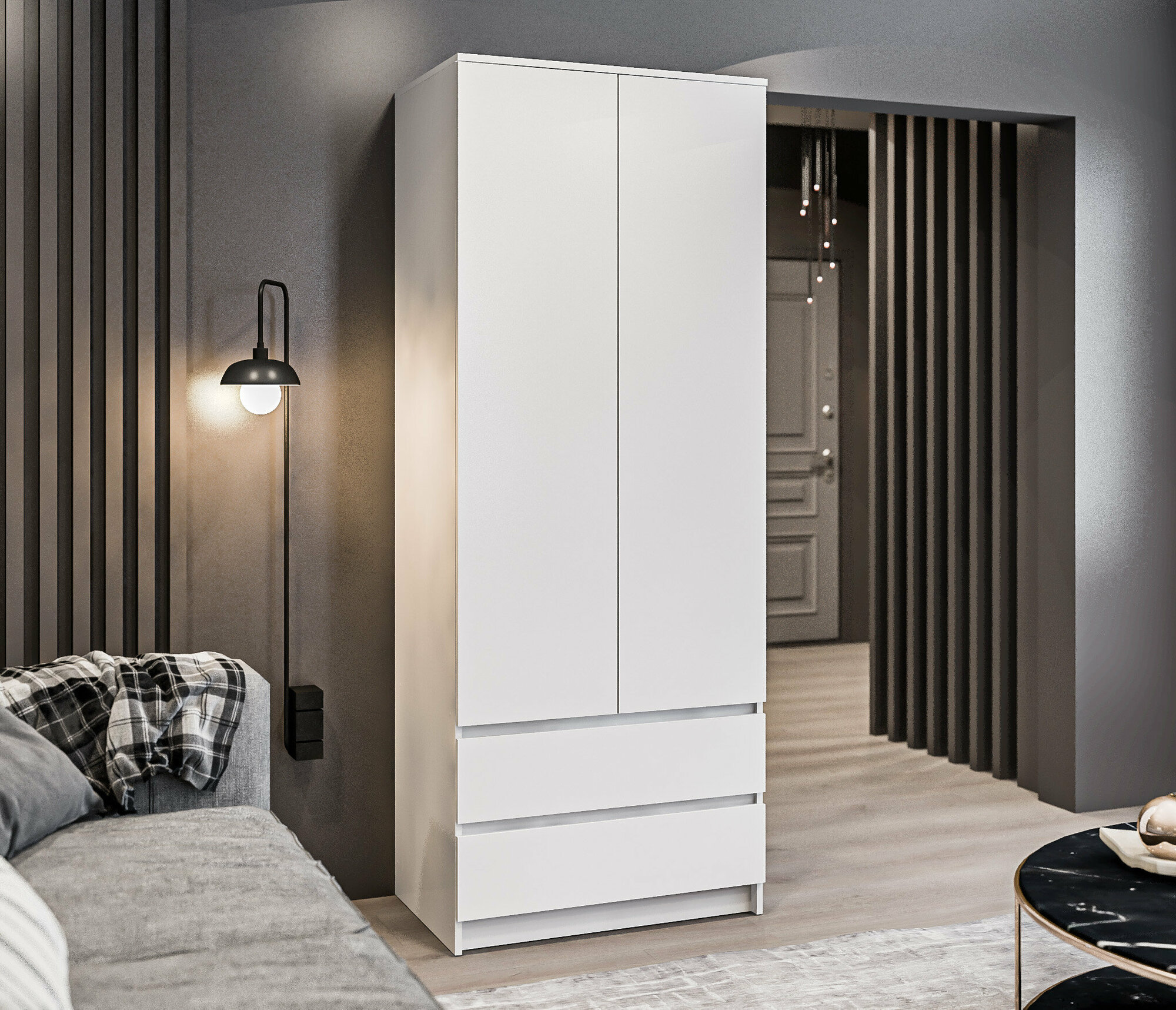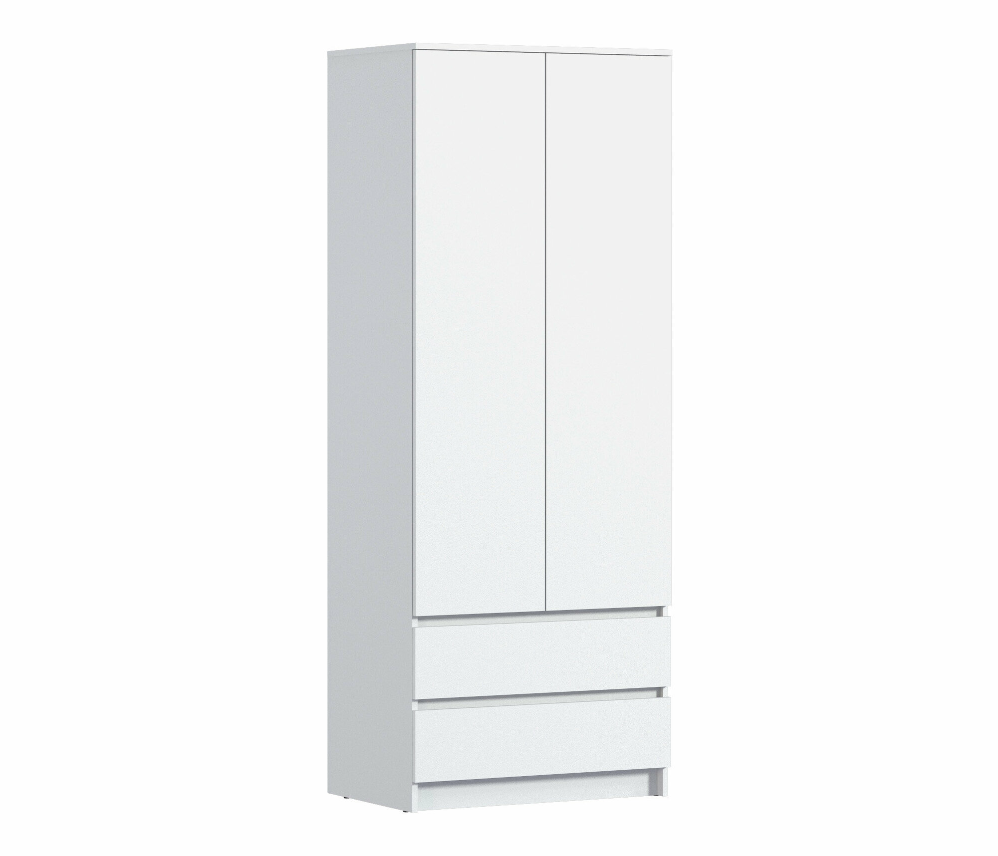 Купить Двухдверный шкаф столплит Леон СБ-3362 с 2 ящиками, со штангой, 3 полками, без ручек в спальню, детскую, гостиную Белый 78х202х52см
