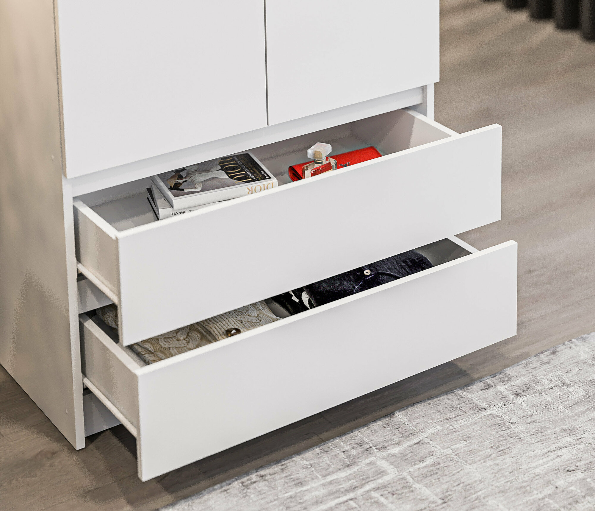 Двухдверный шкаф столплит Леон СБ-3362 с 2 ящиками, со штангой, 3 полками, без ручек в спальню, детскую, гостиную Белый 78х202х52см интересное: