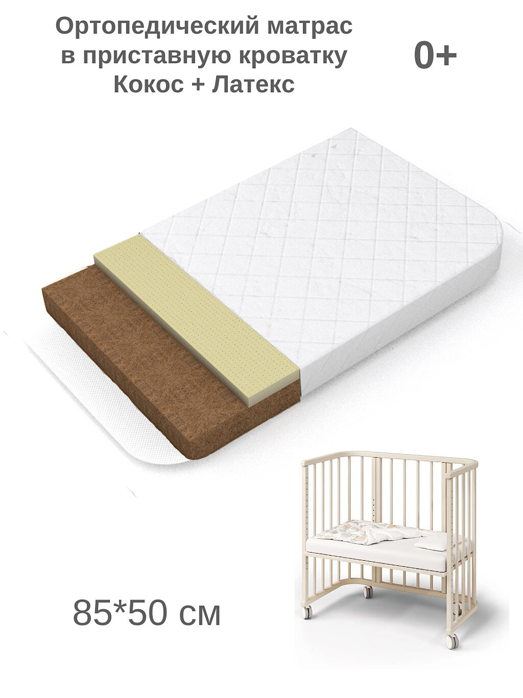 Купить Матрас детский в кроватку новорожденному 85x50 Bebo Organic Lux, кокосовая койра и латекс
