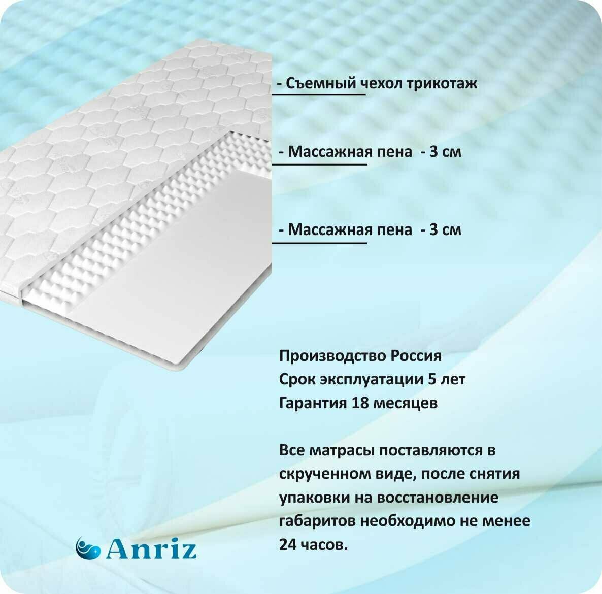 Матрас-топпер Anriz "Топпер Массаж", анатомический, 80x190 см