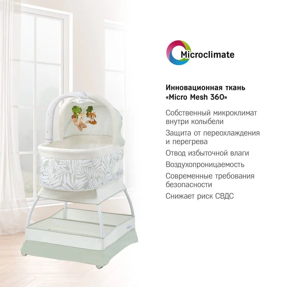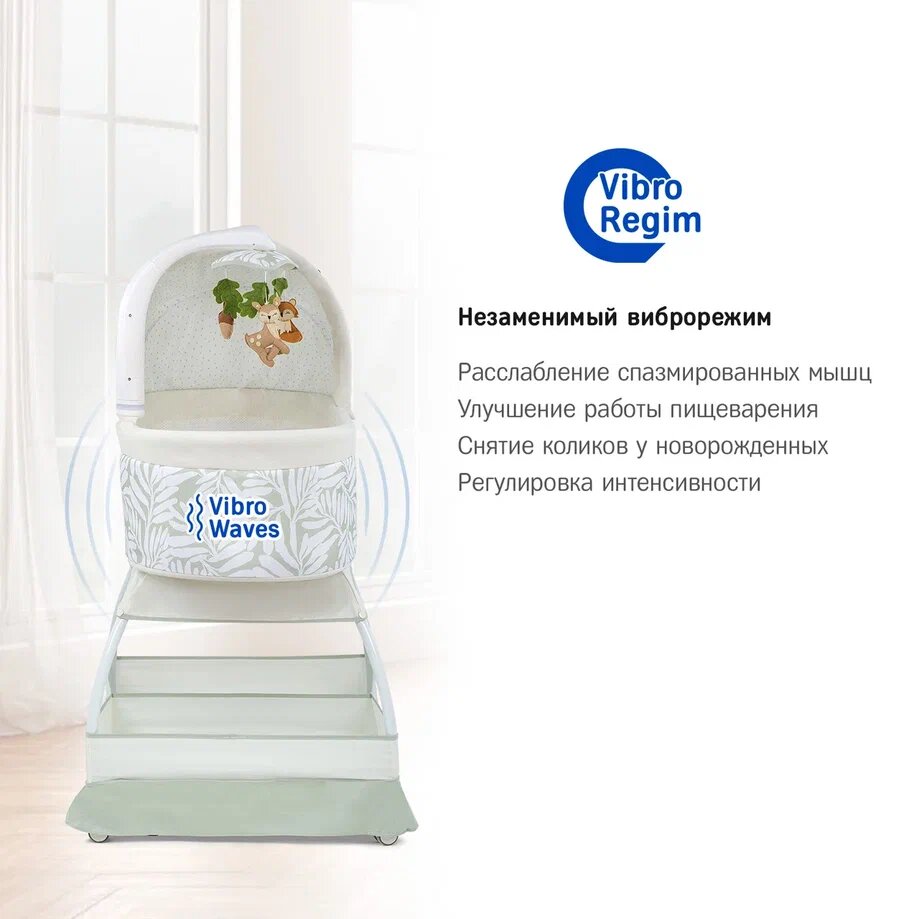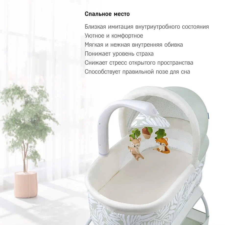 | Особенности | колеса / колыбельные мелодии / люлька-корзина / с функцией автоматического укачивания / с функцией вибрации / стопор колес |