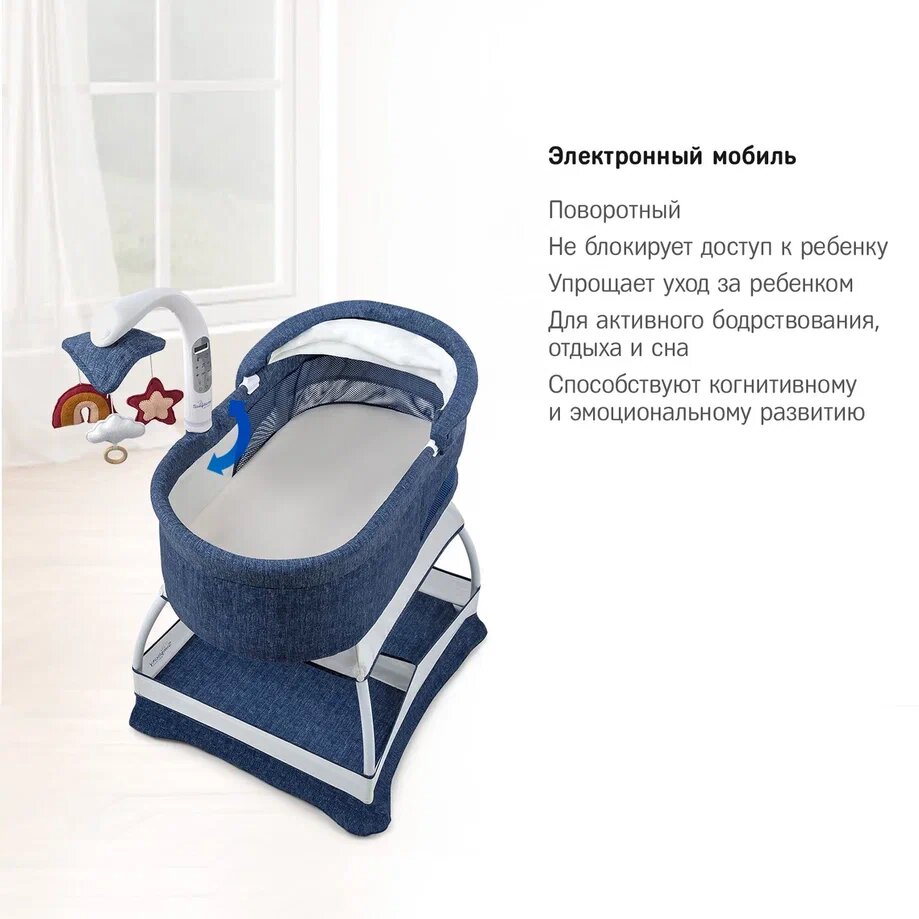 | Особенности | колеса / колыбельные мелодии / люлька-корзина / с функцией автоматического укачивания / с функцией вибрации / стопор колес |