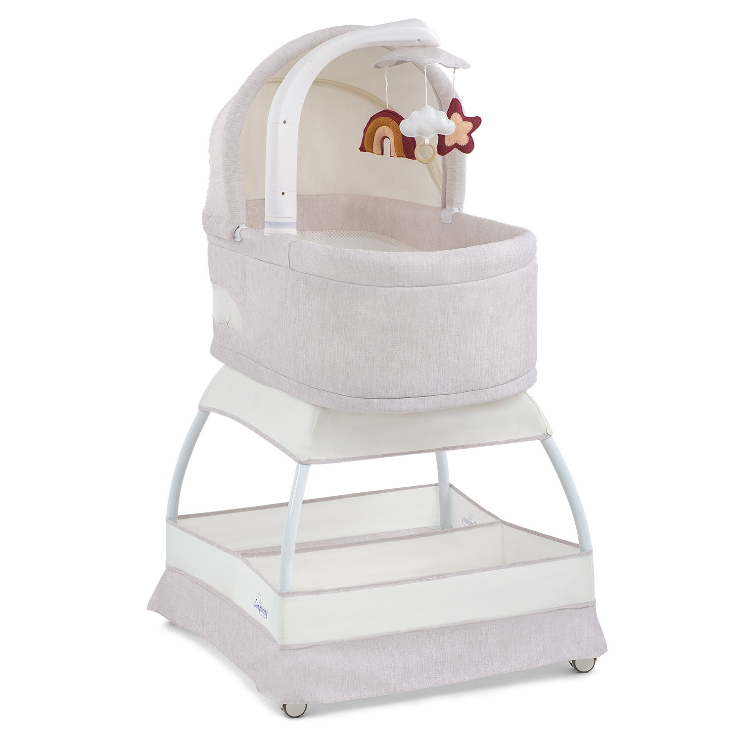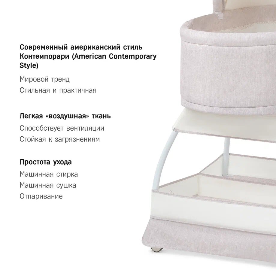 | Особенности | колеса / колыбельные мелодии / люлька-корзина / с функцией автоматического укачивания / с функцией вибрации / стопор колес |