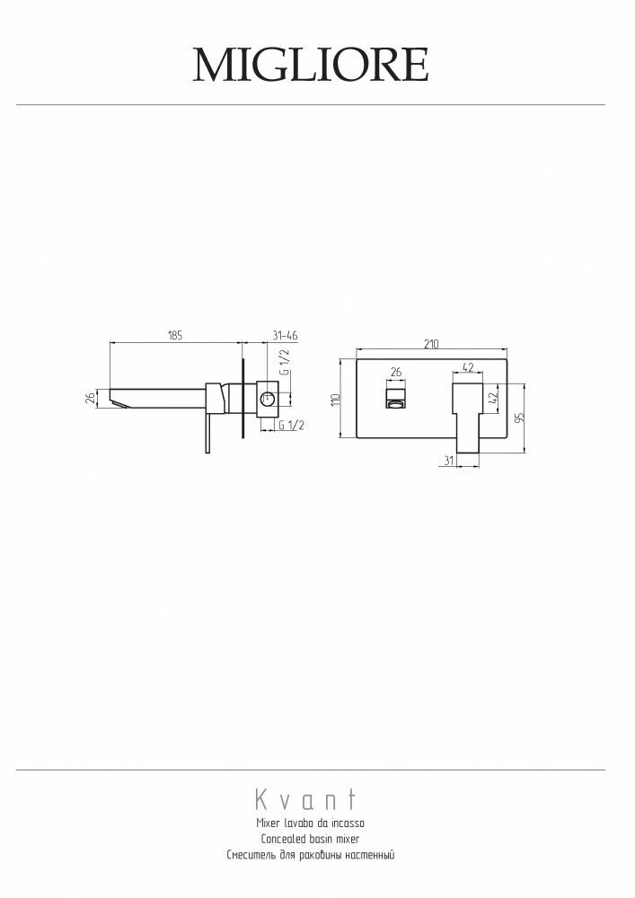Migliore Смеситель Kvant 18778 скрытого монтажа для раковины, настенный, хром