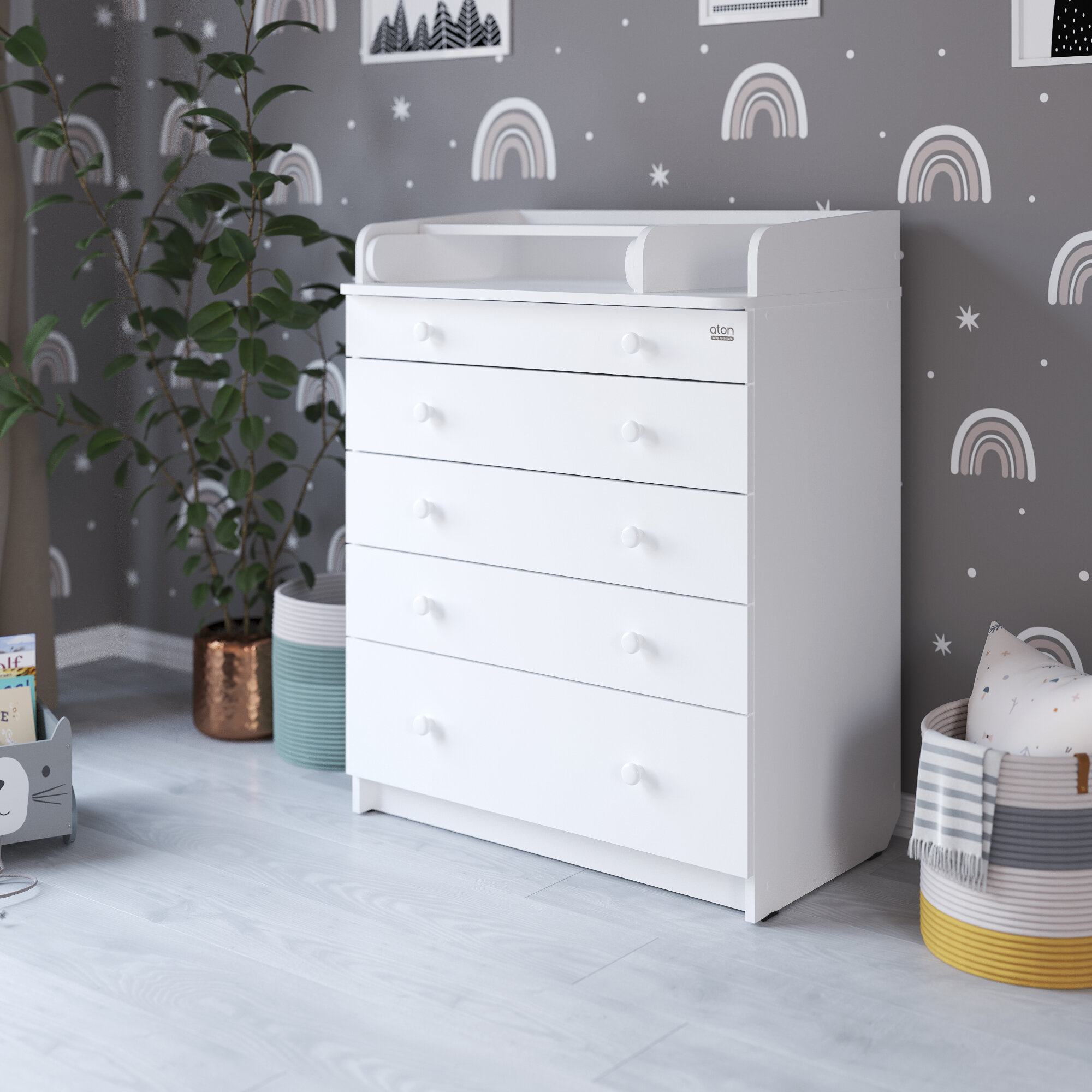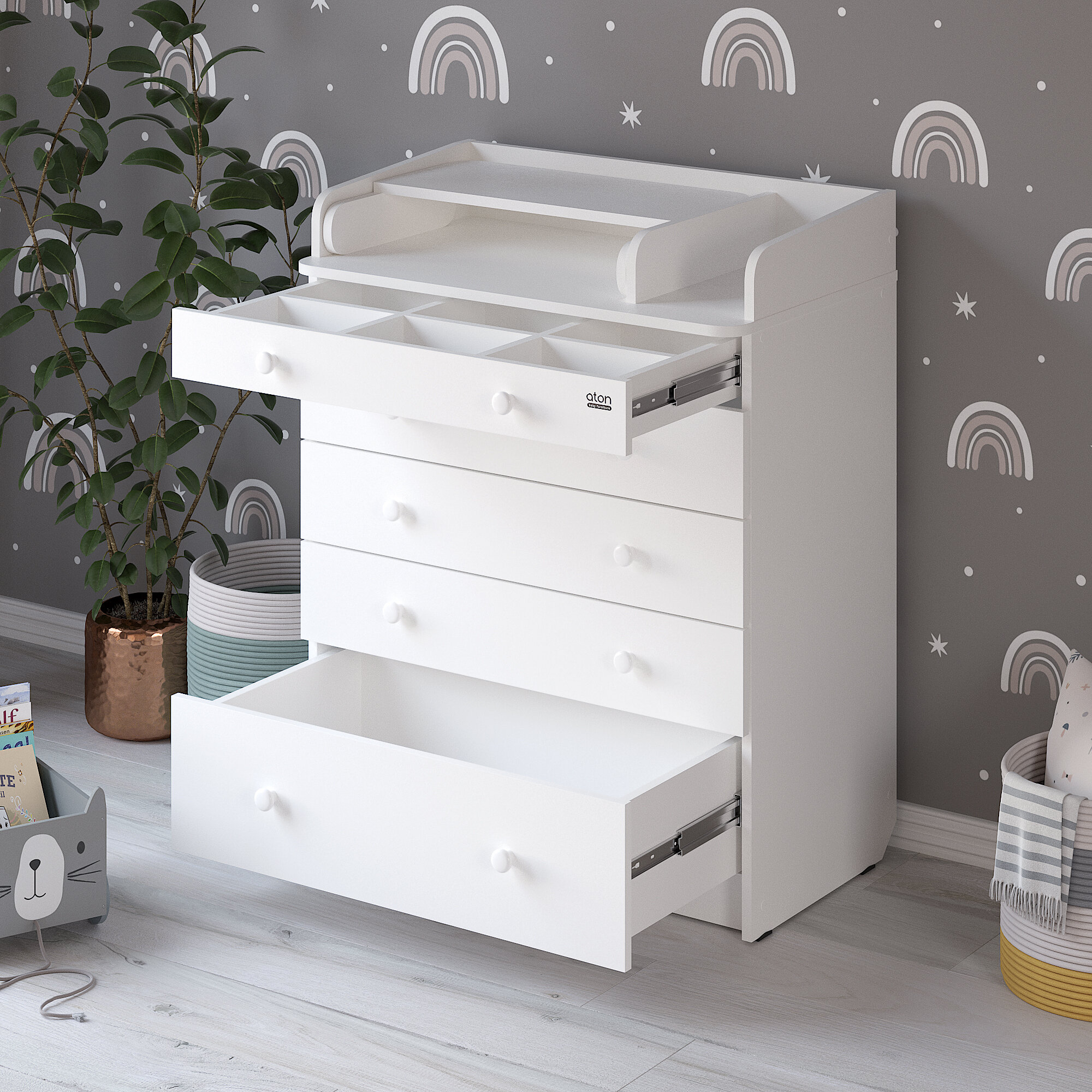 Комод пеленальный Атон Maks 5 ящиков, Древесина белая/белый