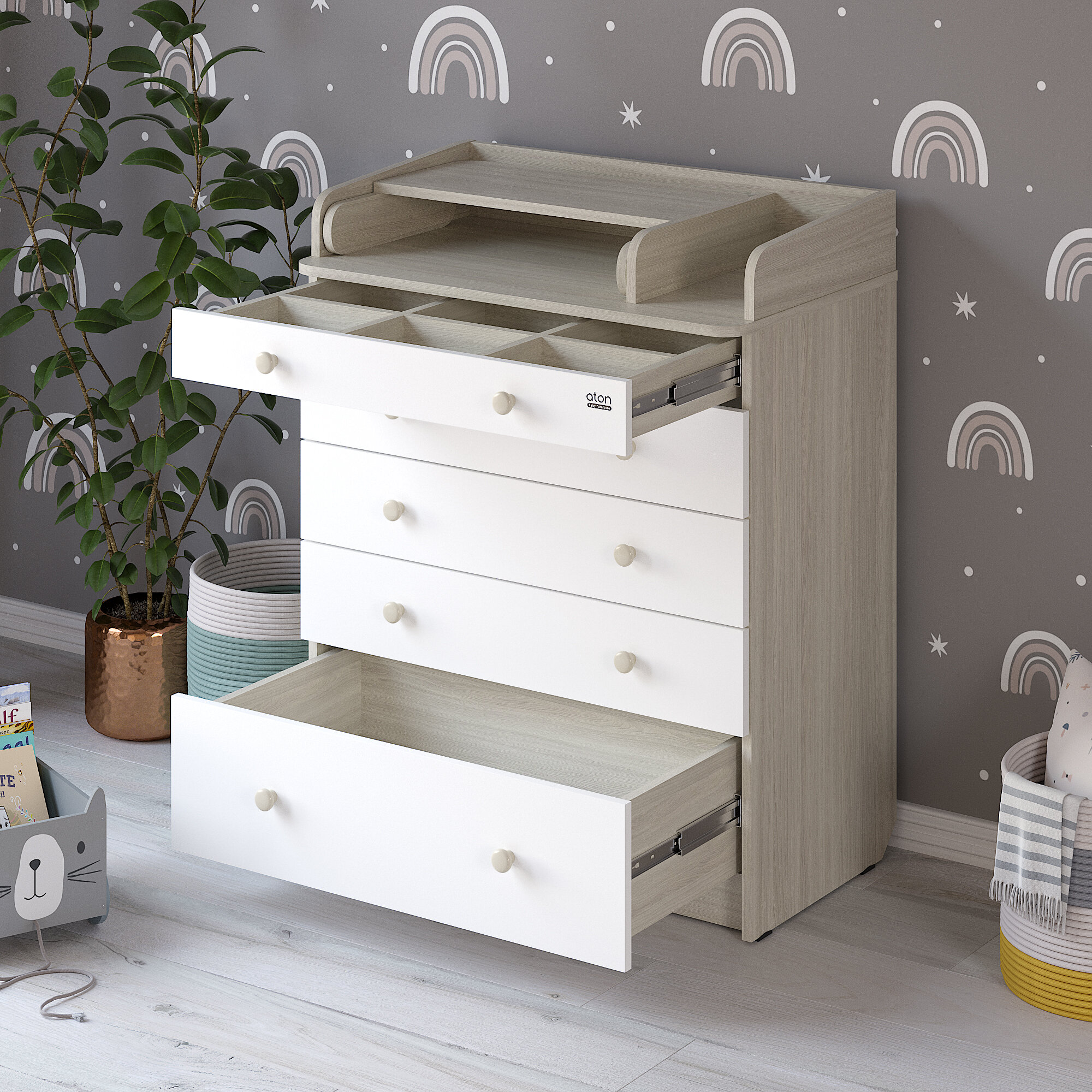 Комод пеленальный aton LEO, 5 ящиков с органайзером, дуб сонома