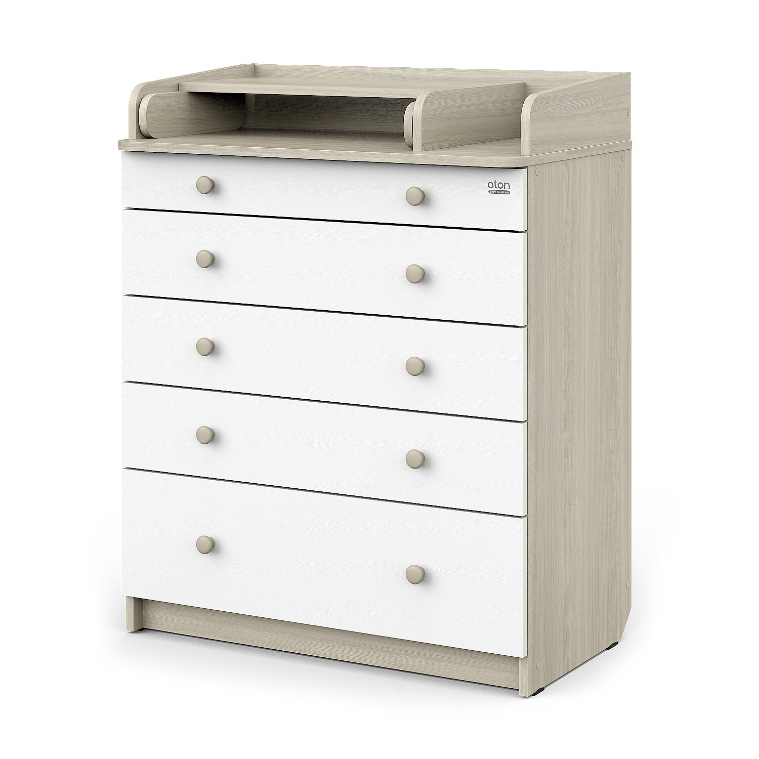 Комод пеленальный Атон Maks 5 ящиков, Древесина белая/белый