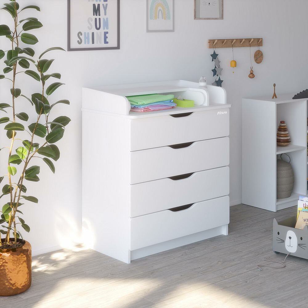 PITUSO Комод раскладной Wood/ 804 ПВХ с шариковыми направляющими Древесина белая, 4 ящика