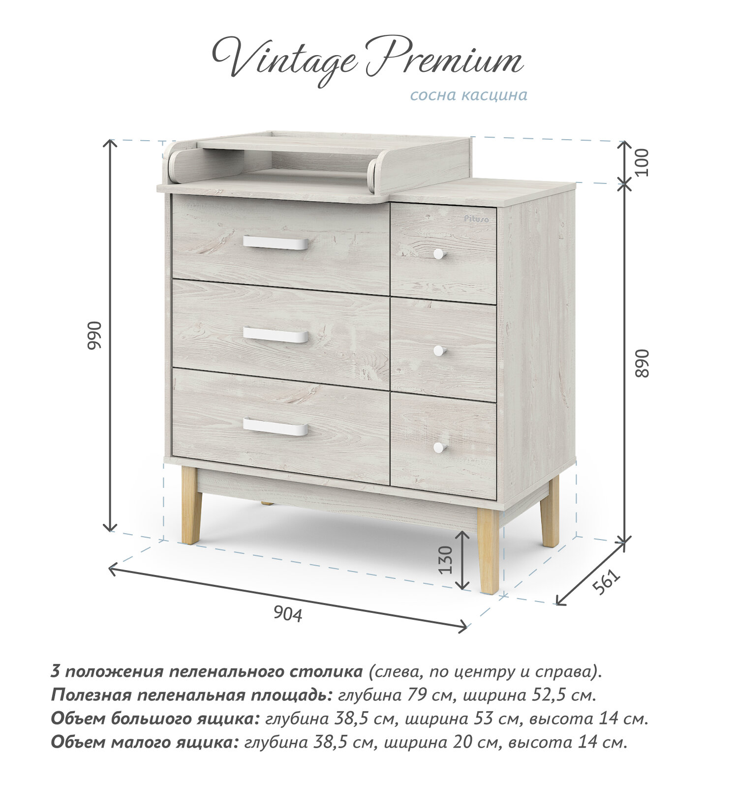 Комод со съемным раскладным пеленальным столиком Pituso Vintage Premium сосна касцина