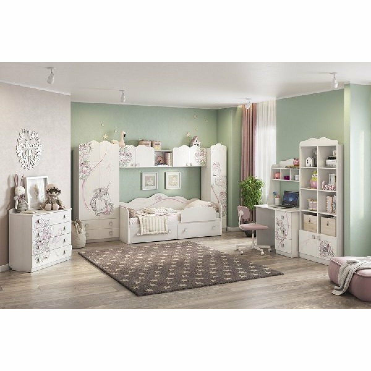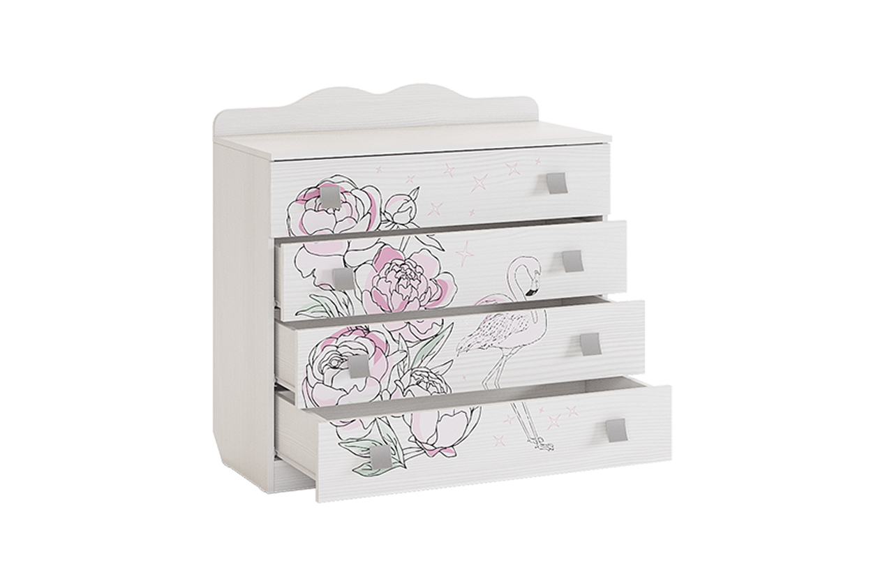 Комод для одежды и игрушек "Фэнтези", 4 ящика, для девочек, 90*42*91,5 см., Mebelson
