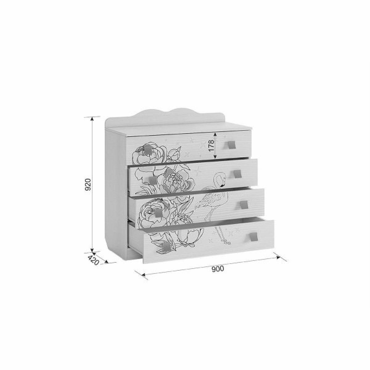 Комод для одежды и игрушек "Фэнтези", 4 ящика, для девочек, 90*42*91,5 см, Mebelson