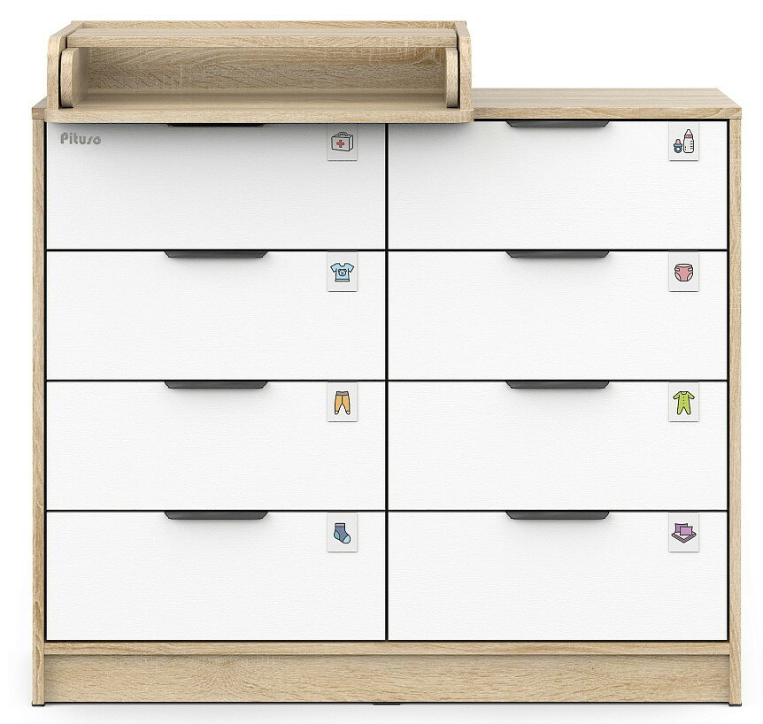 Комод пеленальный Pituso Optimum, 100 х 85 см, 8 ящиков, дуб сонома/белый