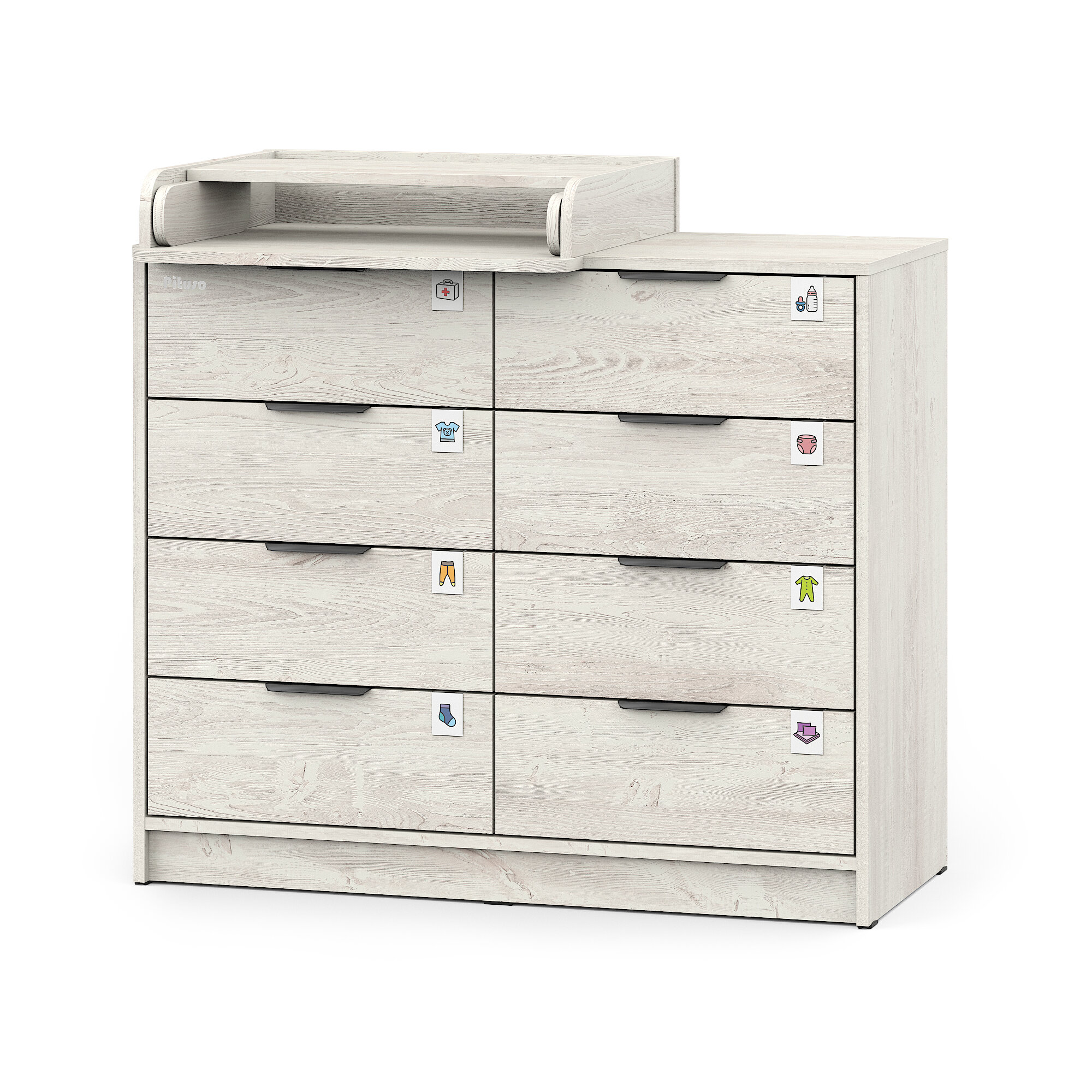 Комод пеленальный Pituso Optimum 8 ящиков, Сосна касцина-белый премиум