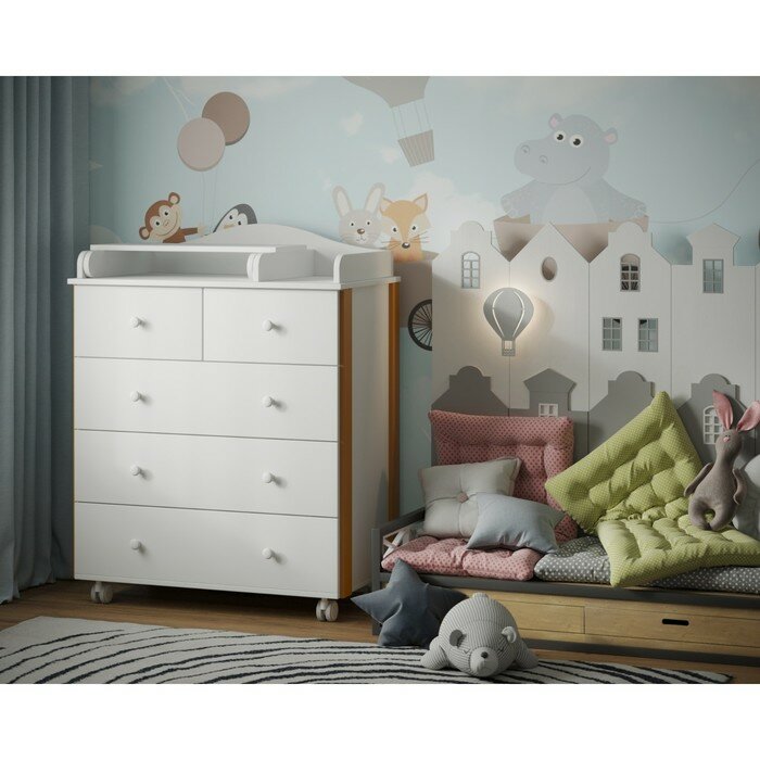 Купить INCANTO Комод пеленальный детский инканто Nuvolla PLUS 800/5, 84х45х107 см., 5 ящиков, цвет белый/бук