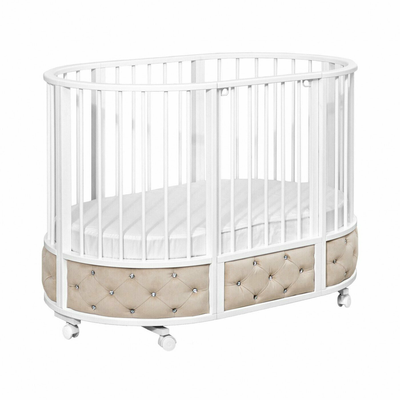 Купить Кровать EVA декор VIP (велюр, стразы) поперечный маятник, колесо, капучино, белый