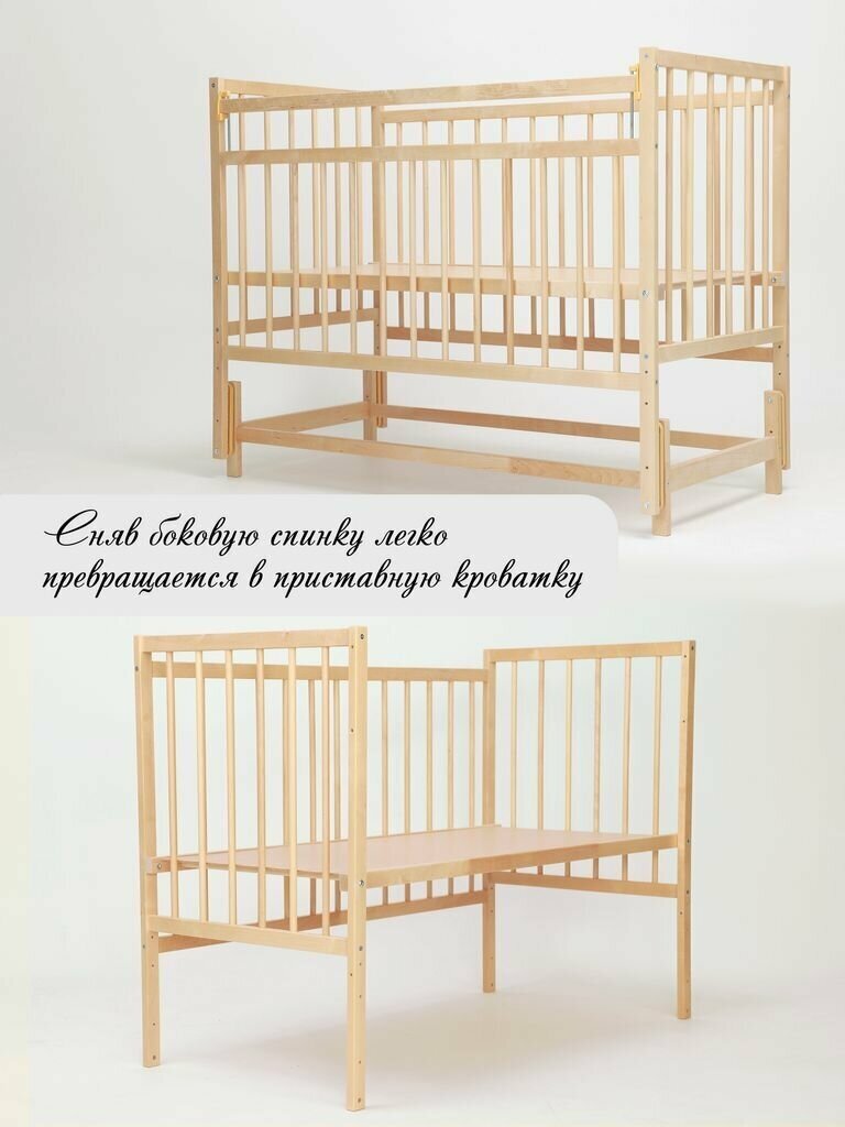 | Особенности | колеса / лакокрасочное покрытие на водной основе / опускается дно / опускающаяся боковина / ортопедические свойства / приставная / стопор колес / съемная боковина |