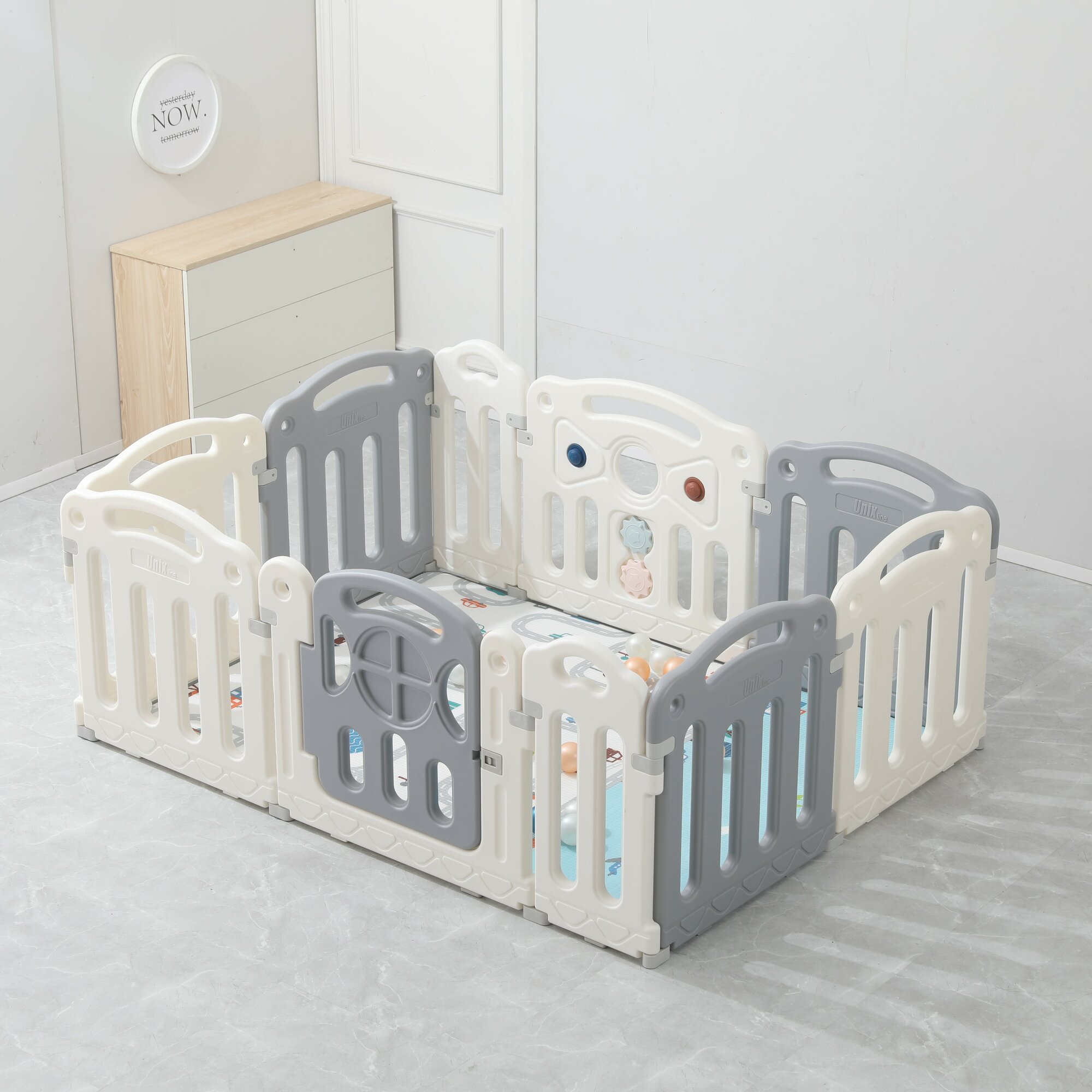 Купить Манеж - игровой UNIX Kids Classic 160x120 Grey с ковриком, для дома и улицы + набор для развития