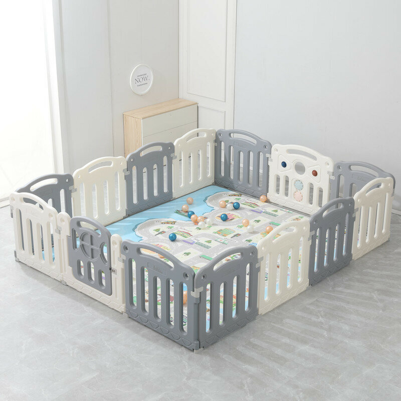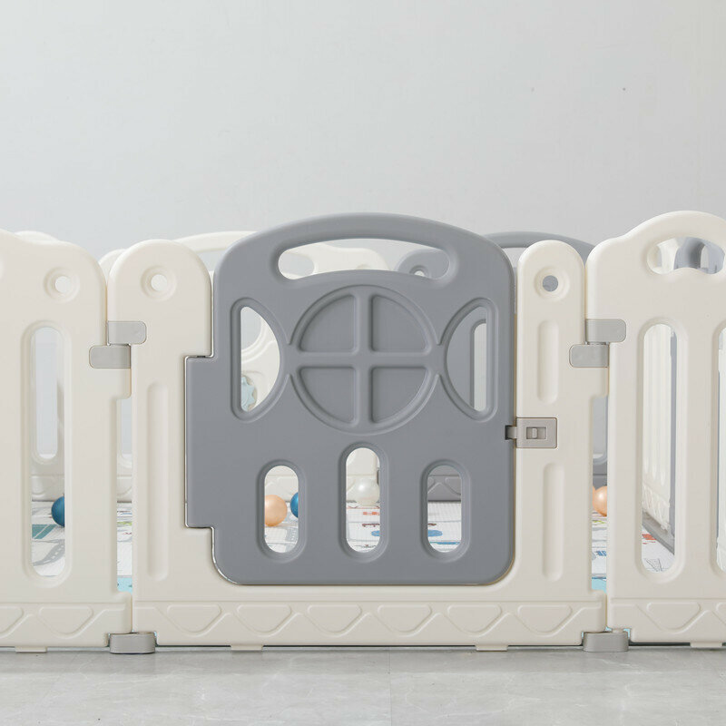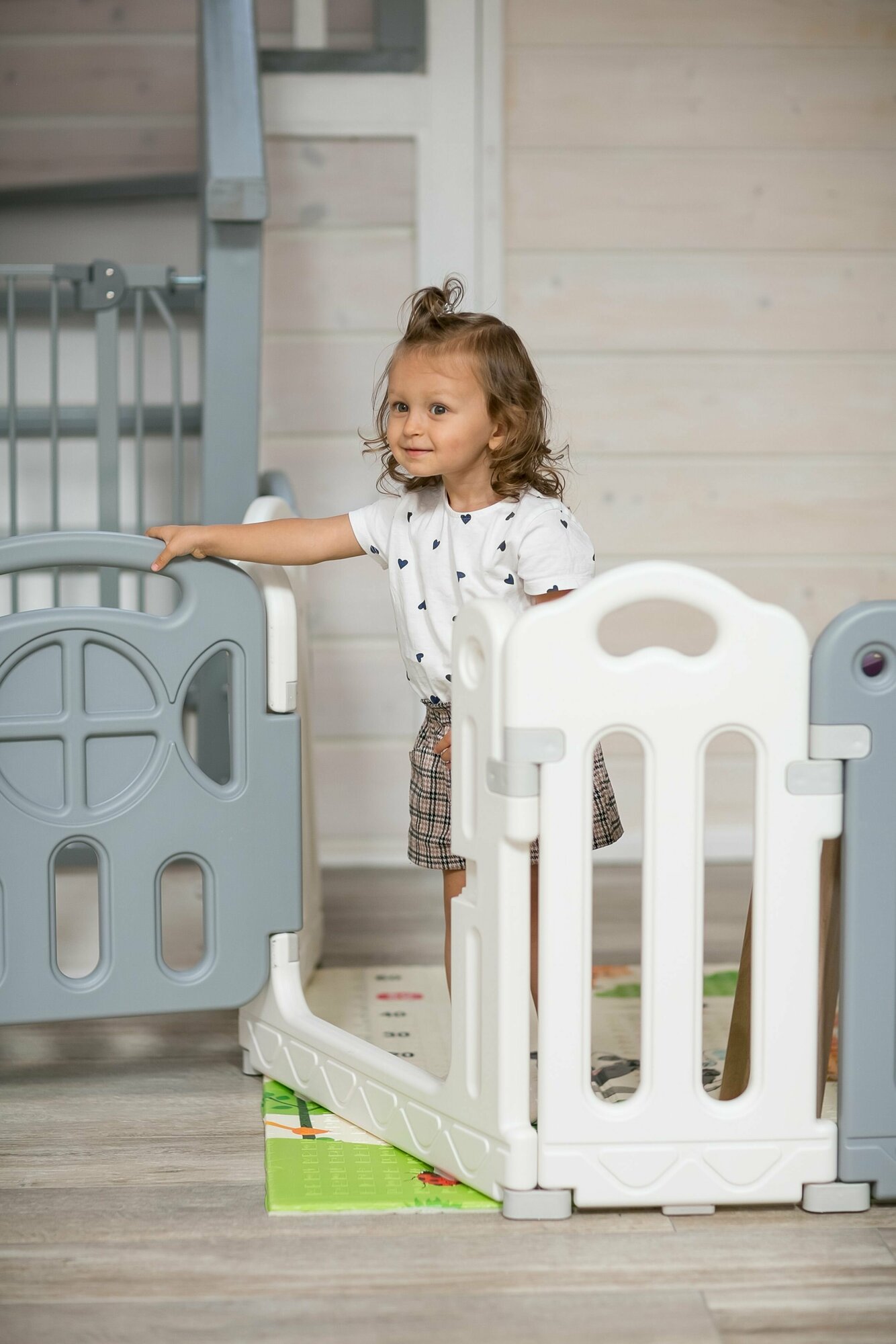 Манеж UNIX Kids "Classic" Grey, серый/белый, 200x240 см, для дома и улицы, коврик, бизиборд, 20 шаров, высота секций 67 см. интересное: