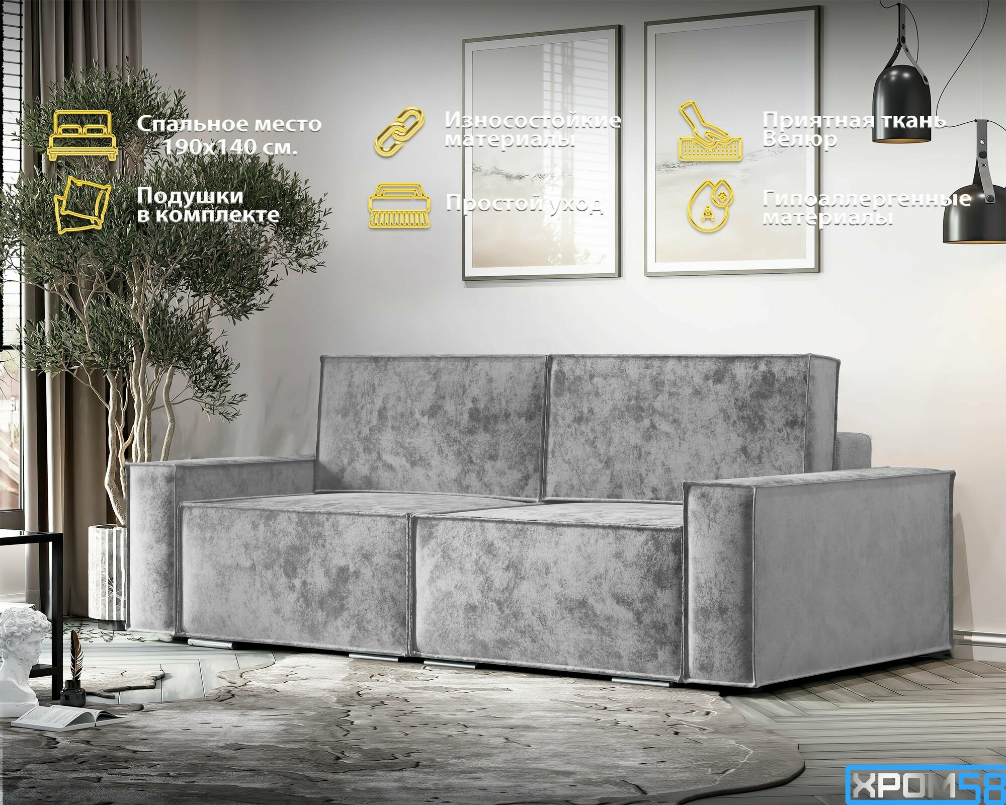 Диван раскладной, диван кровать Лофт Тик-Так велюр серый 234х105х94